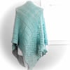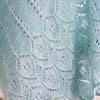 Arctic Ice is an asymmetrical, triangular shawl consisting of mostly relaxing garter stitch coupled with a simple yarn over detail for most of the shawl. A simple lace pattern completes the border. The yarn is held double throughout the shawl. Thus, you will be holding one strand of Aerie Lace with one strand of Keebler Fingering. Larger-sized needles are used to give a slightly looser gauge, resulting in a shawl that is full of drape and (as the lace name says) airy; not to mention warm and cozy too!