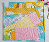 Vintage fabric with mostly solid fabrics pieced in an improv style.