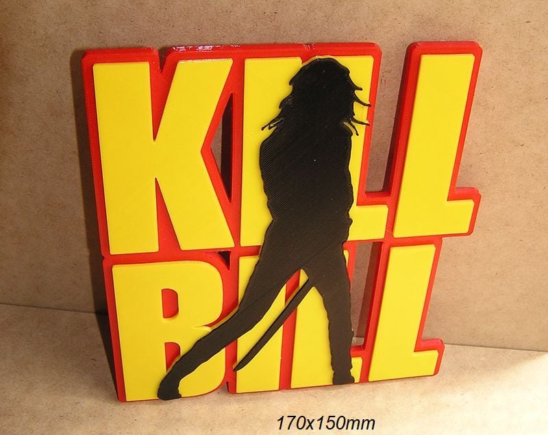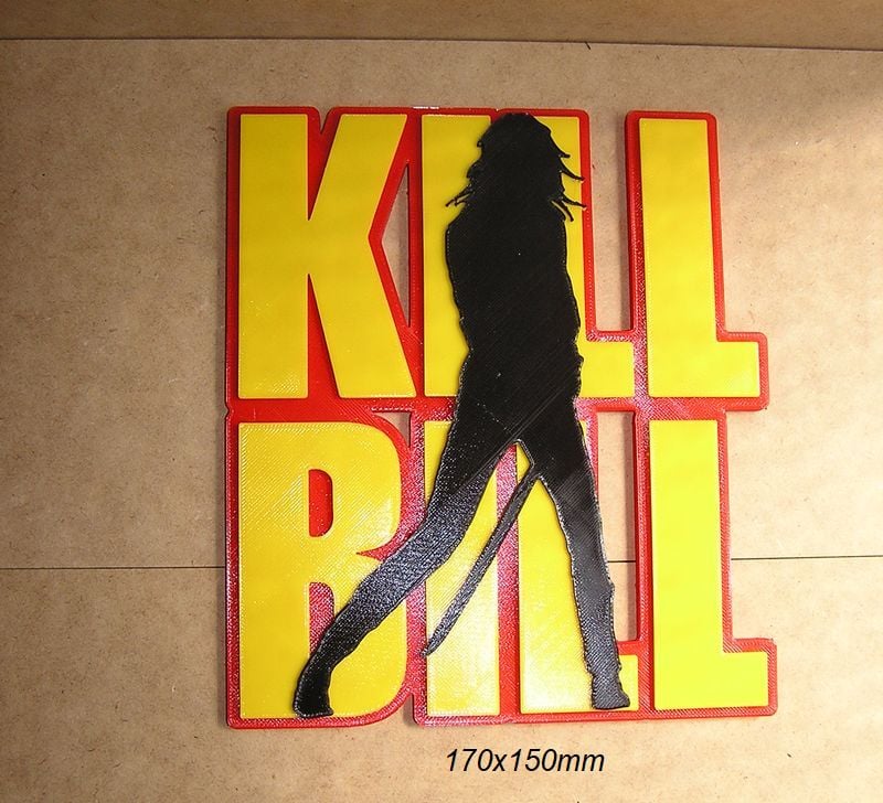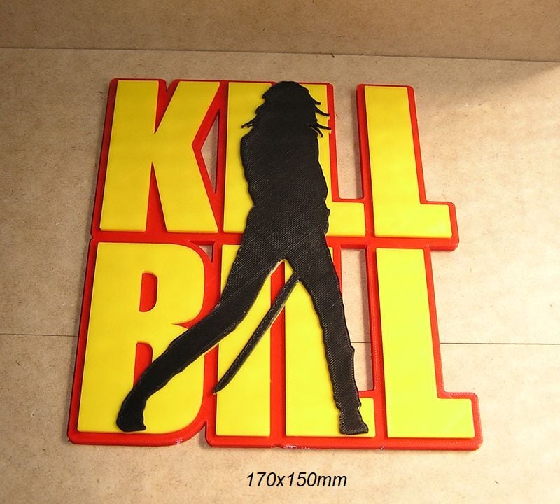 Kill Bill, Uma Thurman, Jhon Tavolta, Quentin Tarantino Poster, Sign, Logo of the movie, these STL and Gcode files have been created to be printed in various colors with any FDM type printer. The color changes have been made with the Elegoo Neptune 3 Pro printer, but they can be printed on any printer.