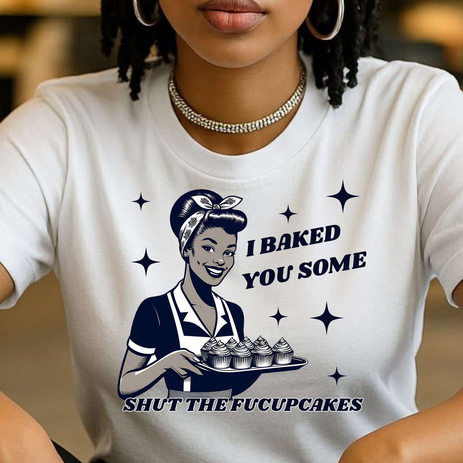 Serving up sass with a side of sweetness. This “Shut the Fucupcakes” PNG is the perfect mix of retro charm and modern attitude. Featuring a vintage-style pin-up baker holding cupcakes with a not-so-sweet message, this design is guaranteed to get laughs and turn heads.