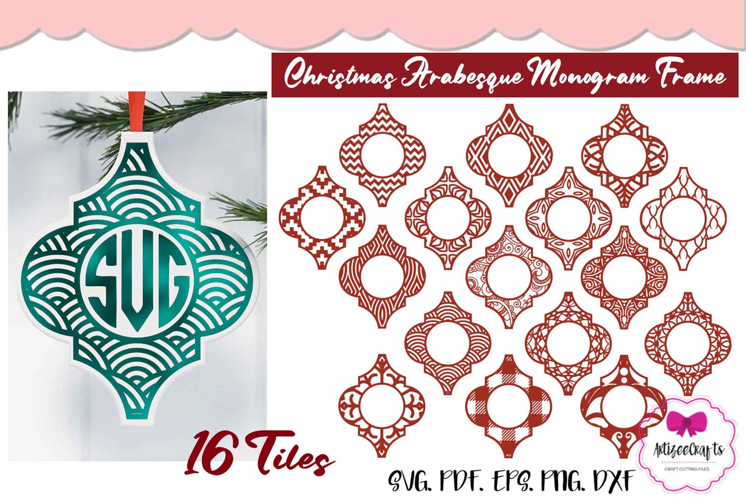 The listing is for Christmas Arabesque Monogram Ornament SVG Bundle. Includes 16 monogram frame designs. They are approximately 4.3" x 3.6" . You may need to resize the tile designs if needed. The files work with most of the cutting and laser machine,