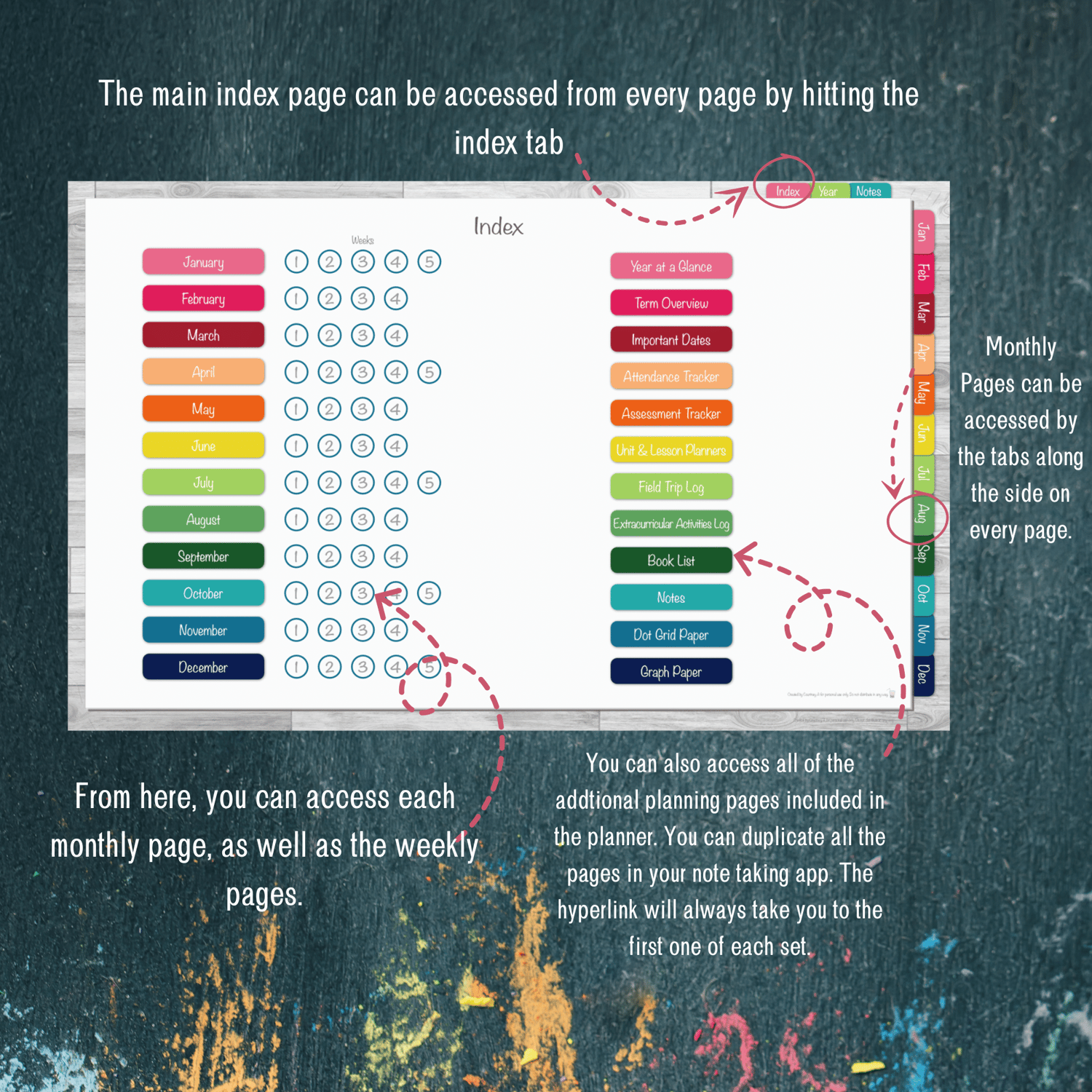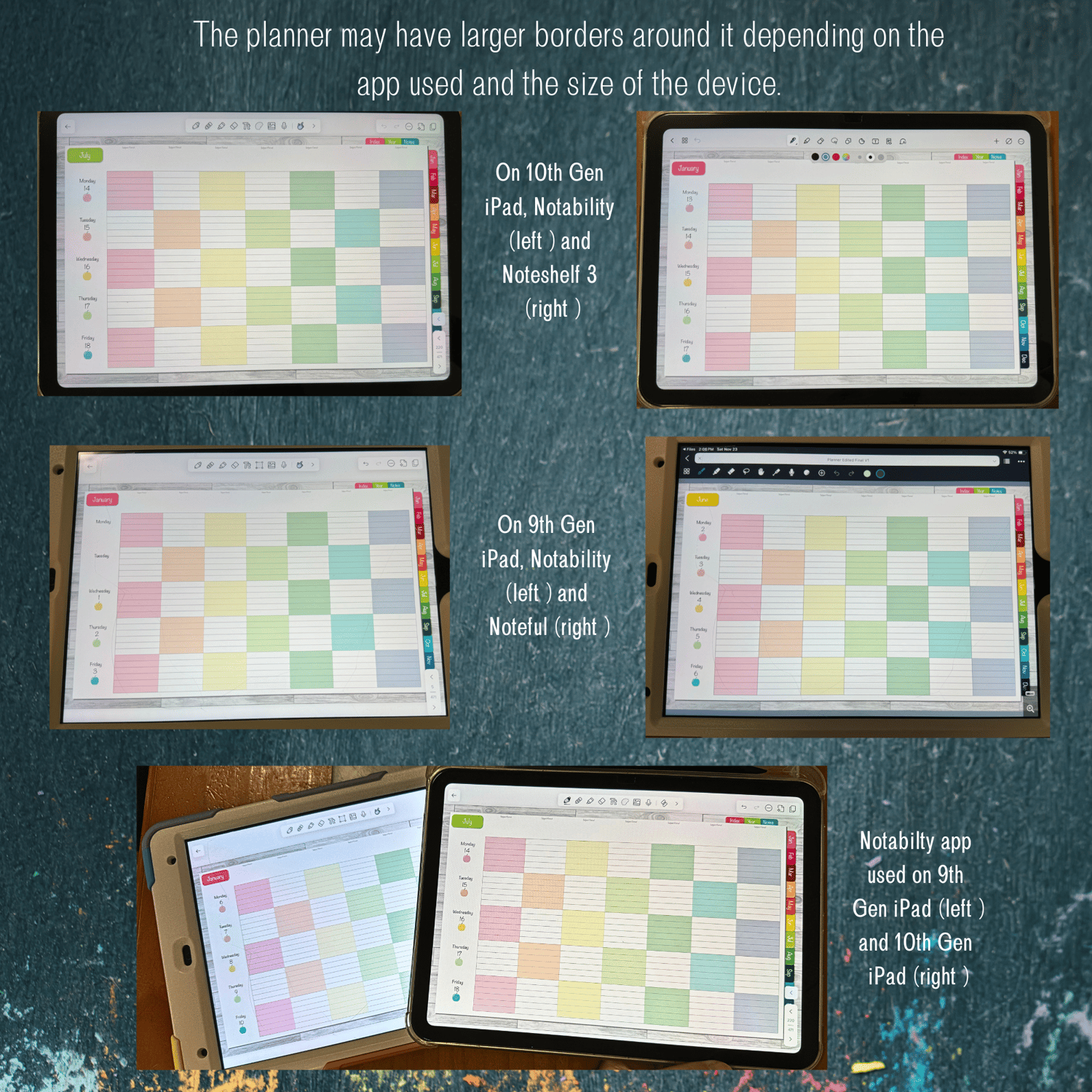 • The text and colors in the planner are not editable or changeable. You may add your own additional text, markings, stickers, etc via your note-taking app.