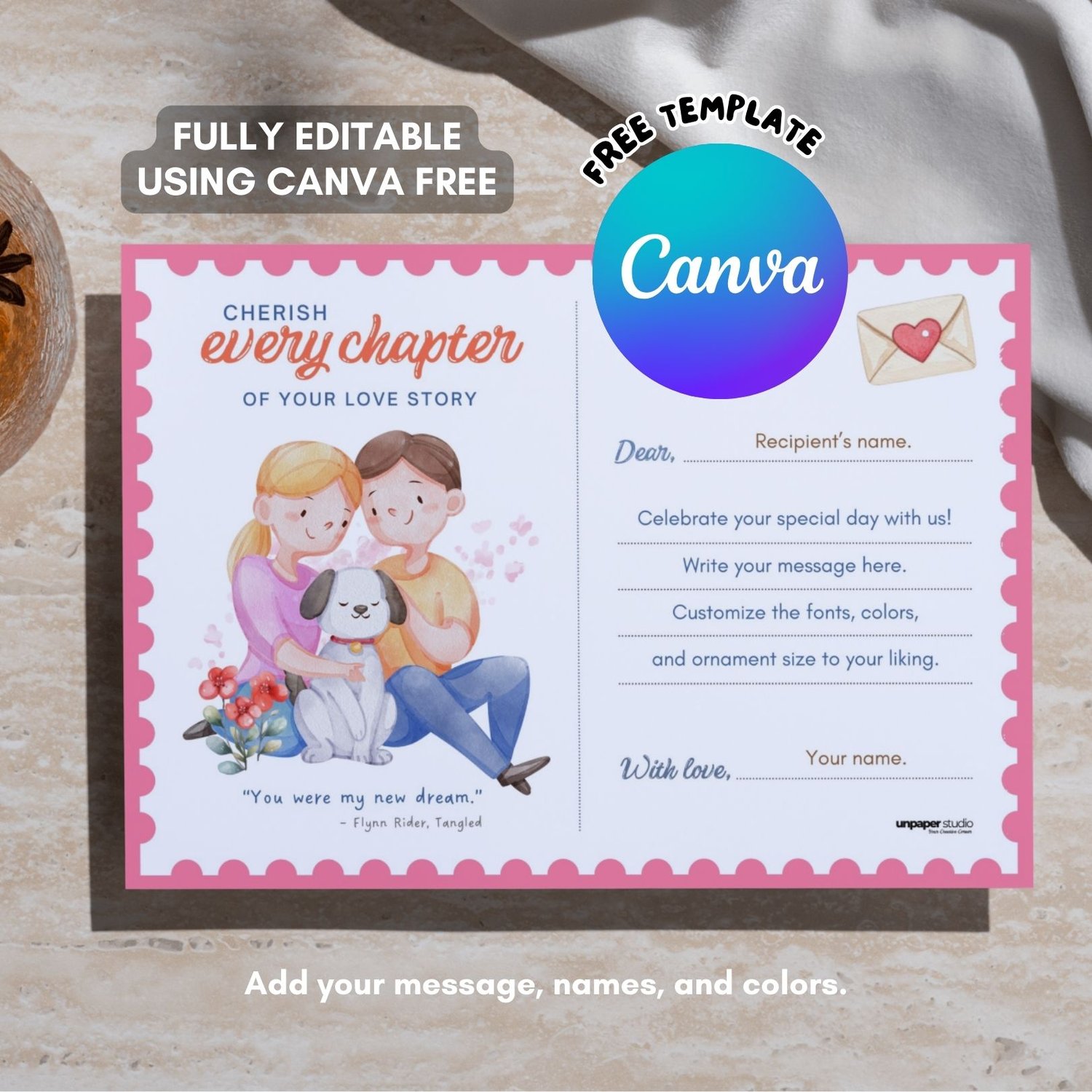 This card is fully editable using Canva Free—no paid Canva account required. You can easily personalize names, messages, fonts, and colors. A print-ready A6 PDF is included, allowing you to edit, download, and print effortlessly.
