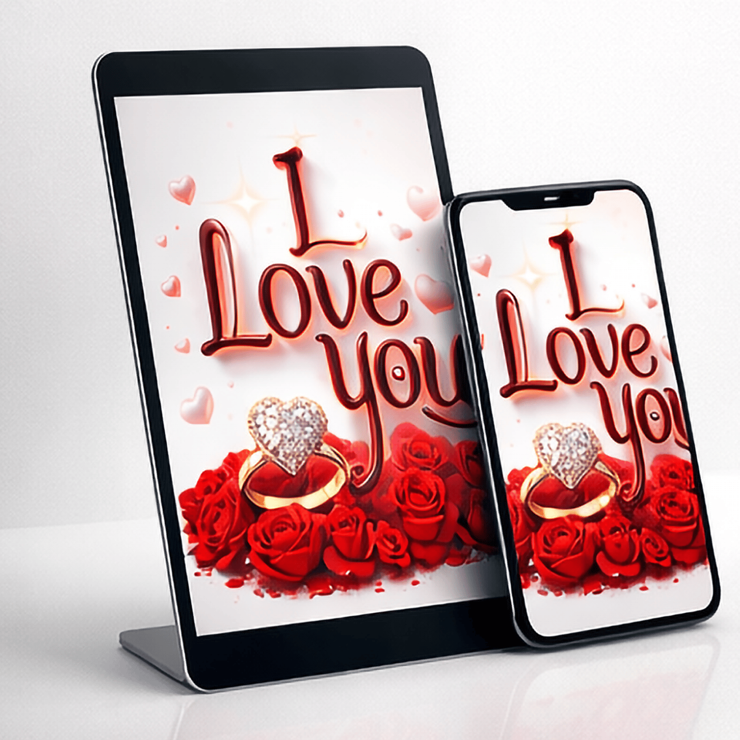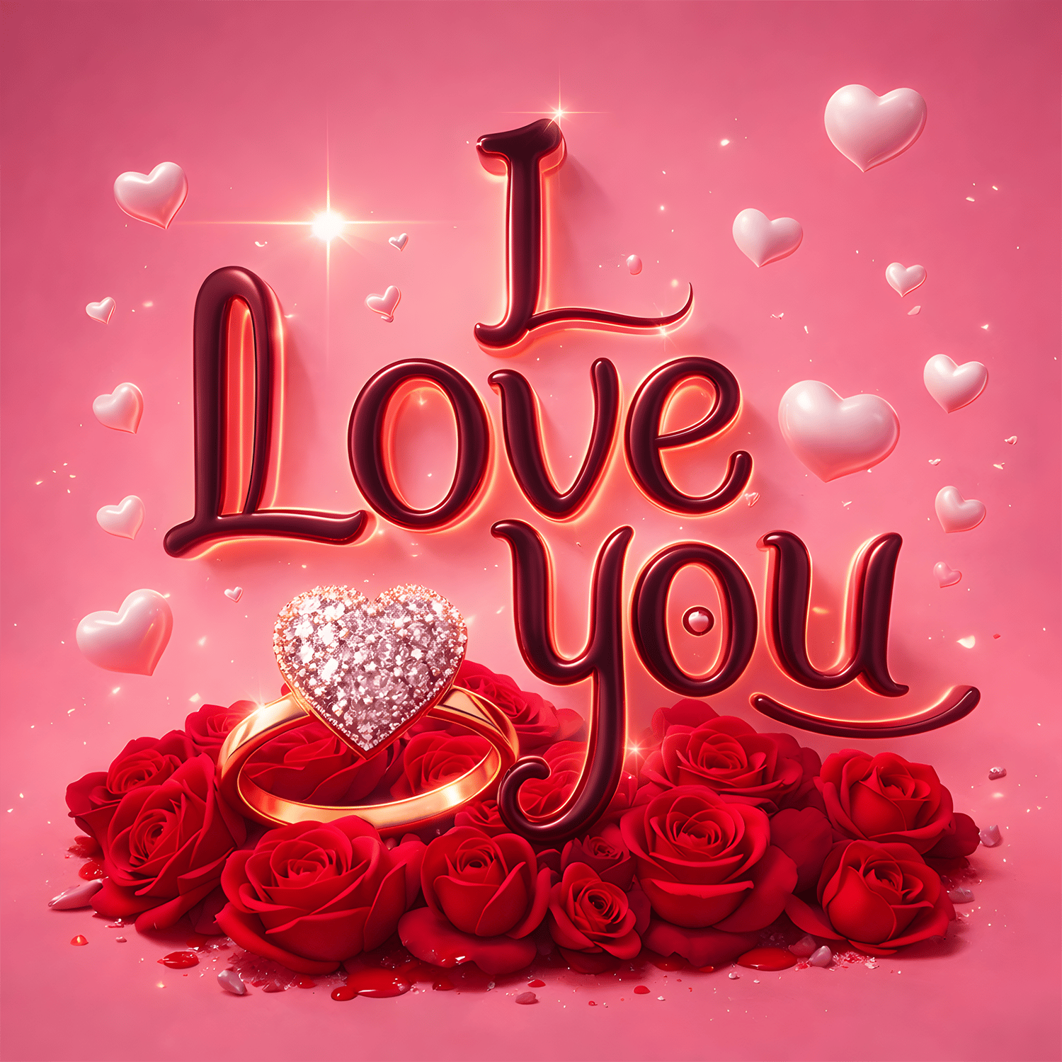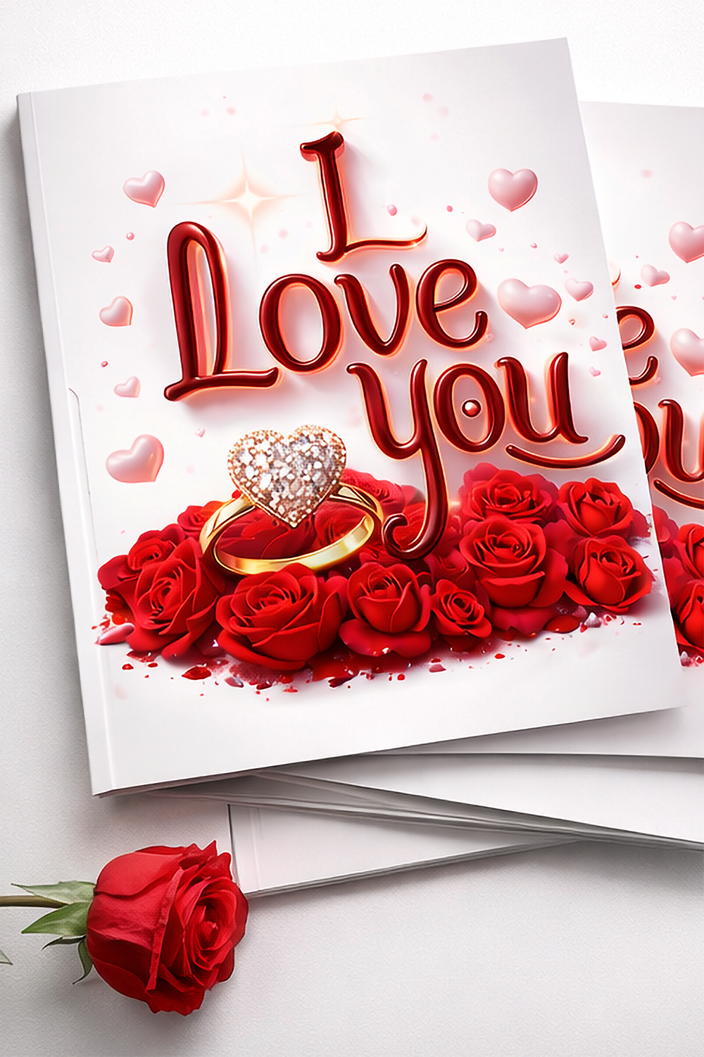 Make a bold, unforgettable statement of love with this ultra-romantic luxury artwork featuring sculpted red typography, a diamond-encrusted heart ring, and a bed of deep red roses. This piece blends elegance, passion, and timeless romance into a single breathtaking visual.