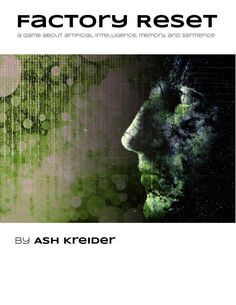 Factory Reset is a LARP about artificial intelligence, memory, and sentience. It requires 8-12 players (including the facilitator, a quiet space, and about 2-3 hours to play.
