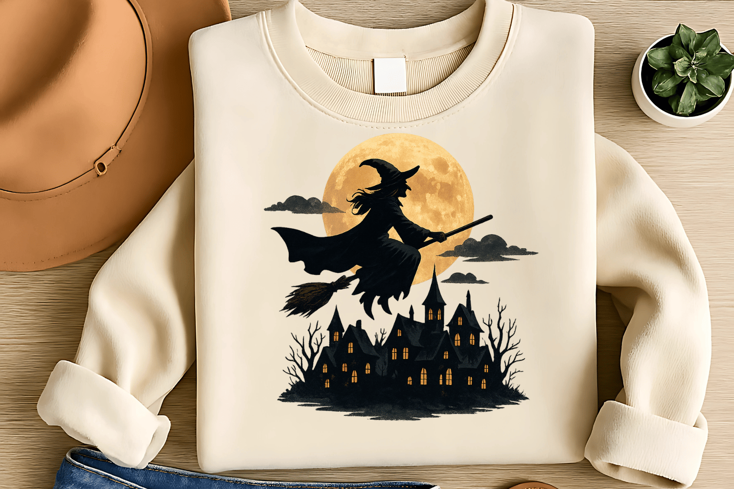 Bring Halloween night to life with this Witch Over the Village design—a hauntingly magical scene for all your spooky creations! 🌙🏚️🧙♀️🎃