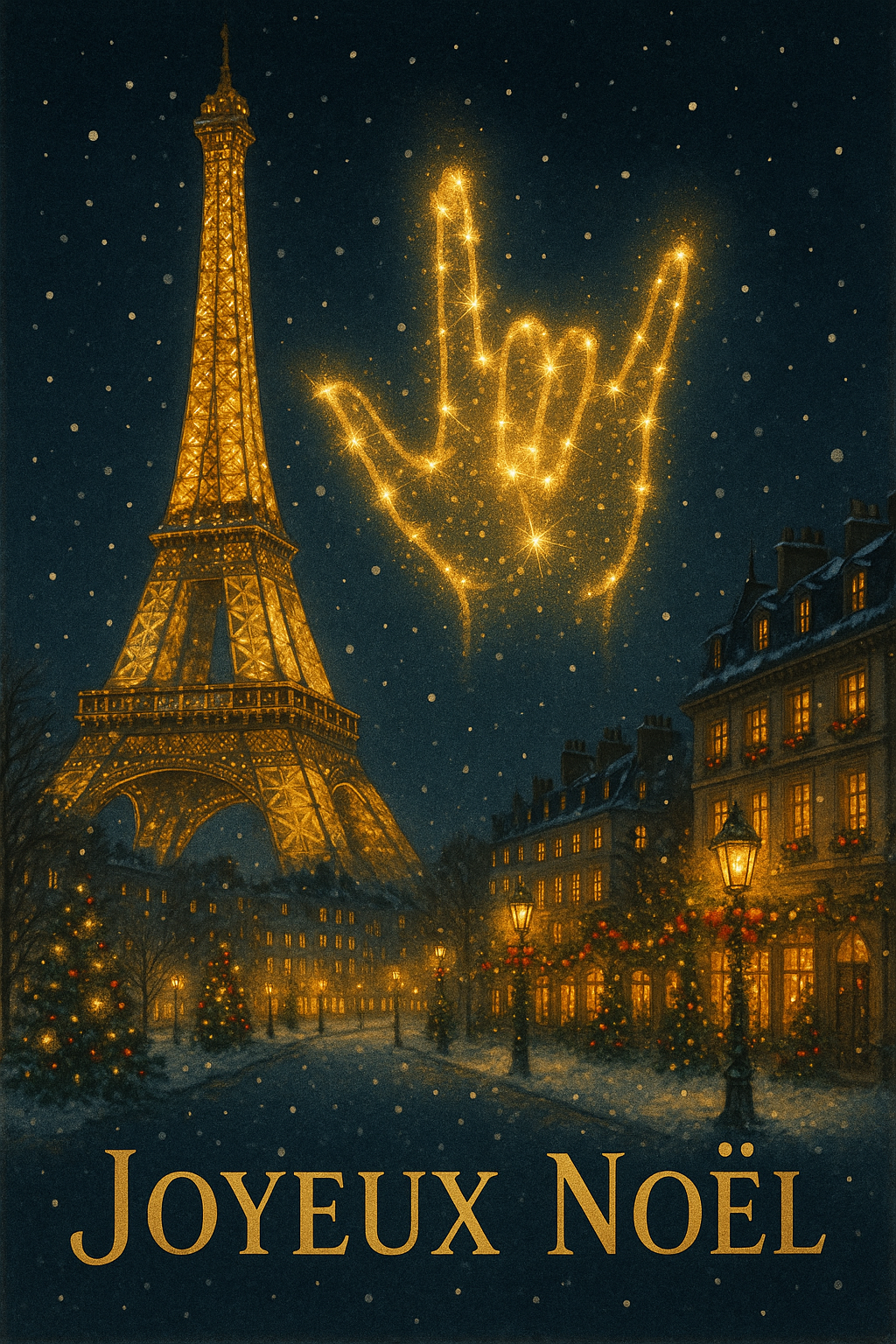 Joyeux Noël – Paris Eiffel Tower ASL ILY Constellation – Printable Christmas Art (France Edition)