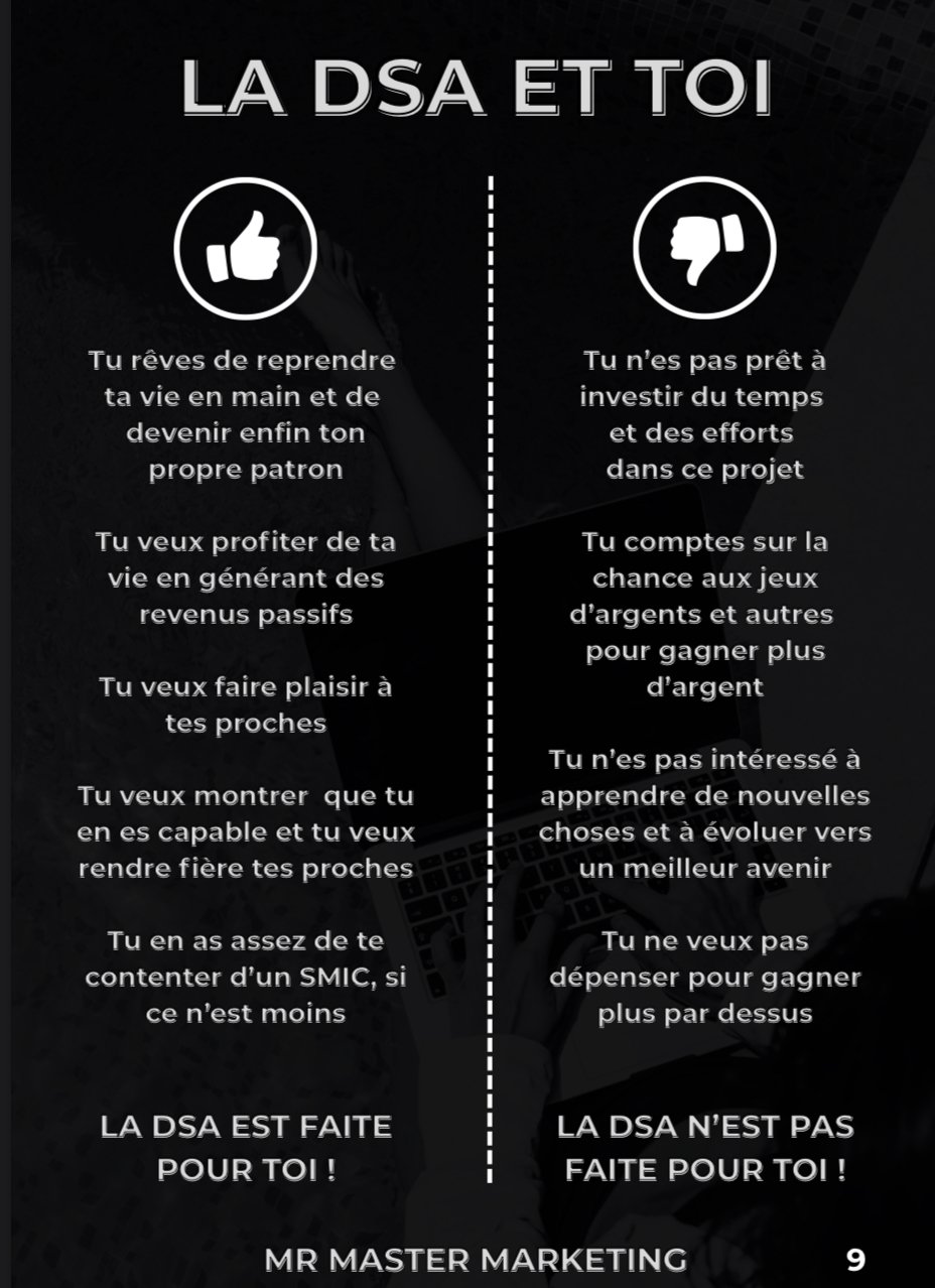 Dans cet ebook, tu vas découvrir le DSA (Drop Service Automatisé), une méthode puissante utilisée par de plus en plus d’entrepreneurs pour générer des revenus passifs grâce à la sous-traitance de services digitaux. Contrairement au dropshipping, ici, tu ne vends pas des produits, mais des services que tu ne réalises même pas toi-même.