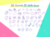 This brush set brings you back to the 90s: there are over 200 retro doodle stamp brushes that will help you remember sweet memories of your childhood and get easily creative. You will find 101 unique stamps in two different styles (outline and filled - 202 in total) in this brush pack. Create fancy stickers, tattoos, illustrations or just fill them with colours from the free colour palette and have fun. The stamps are ready to use in procreate on your iPad and will be available for download after purchase.