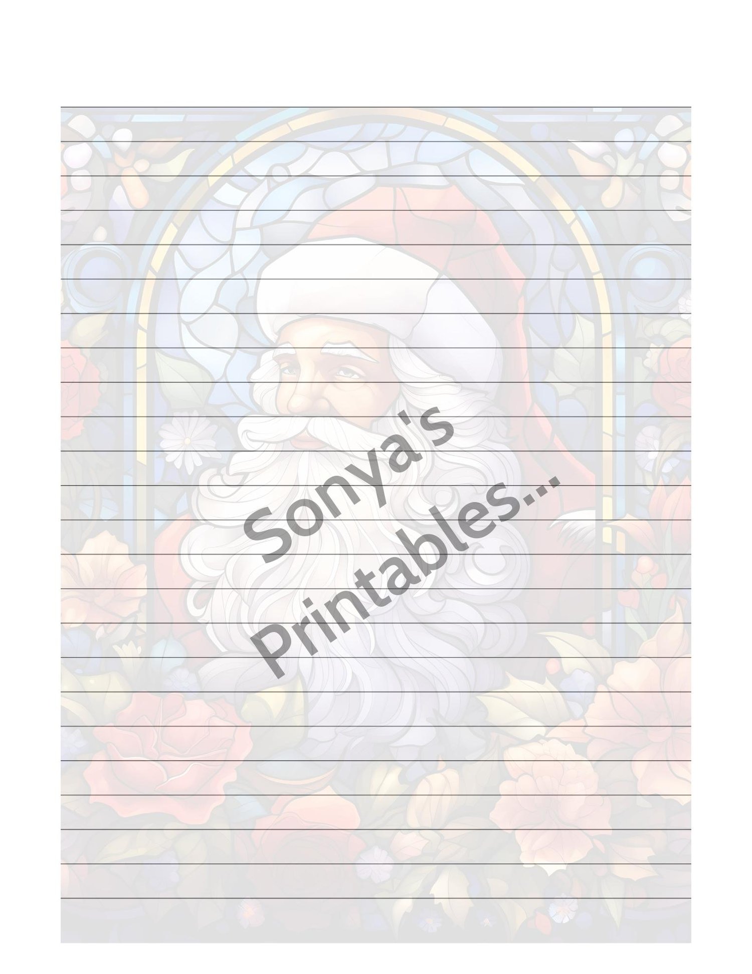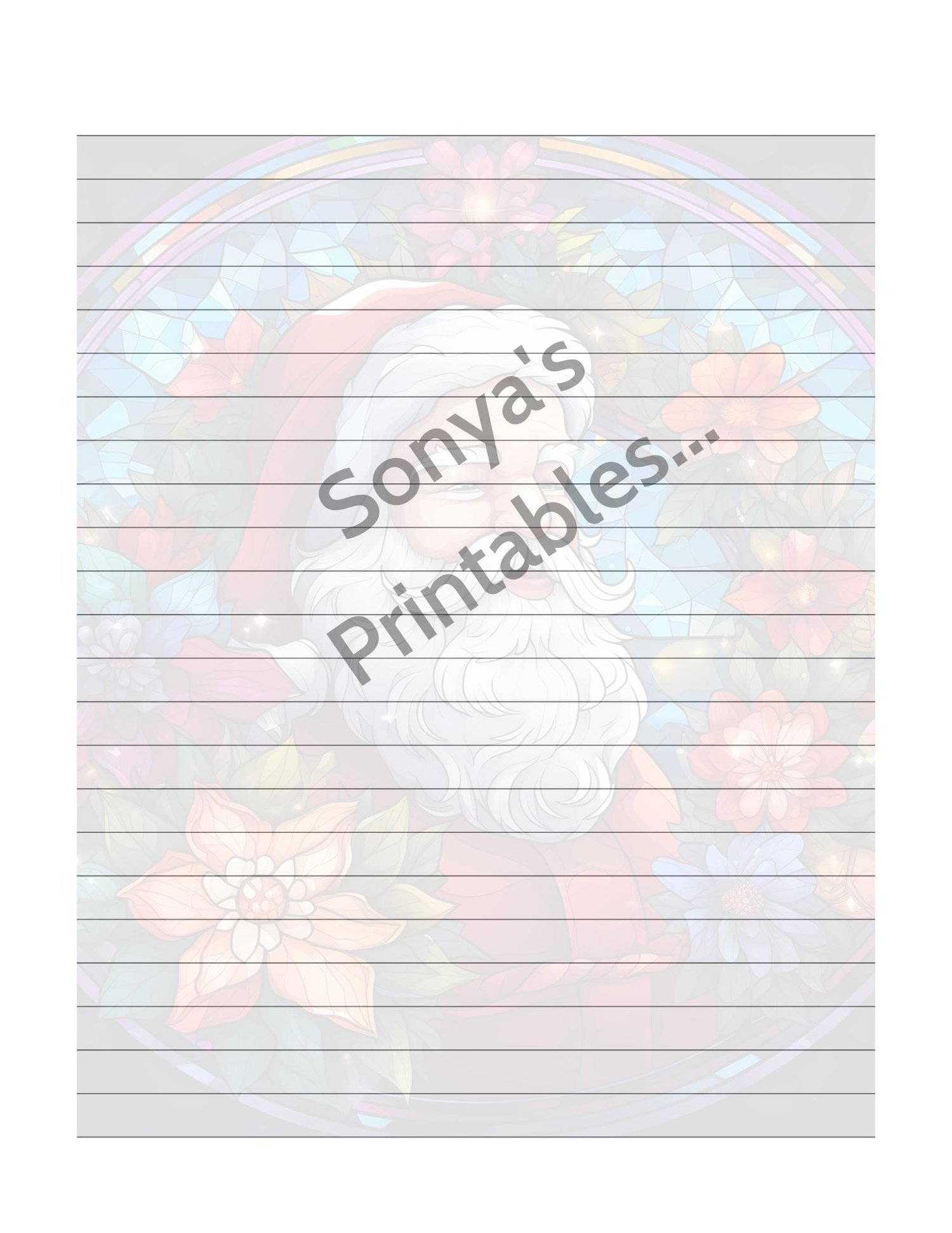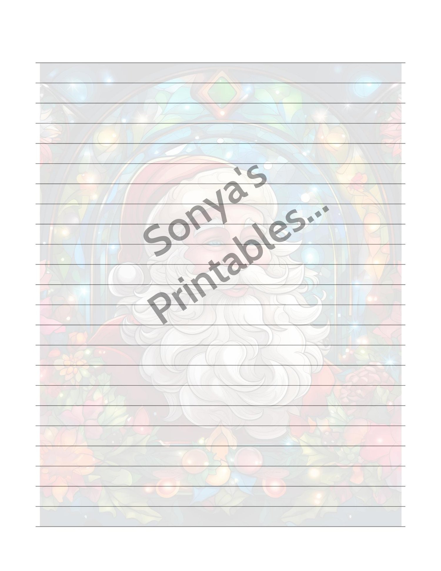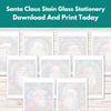 Printable Santa Stain Glass Stationery | Unique Santa Stain Glass Writing Paper | Printable Santa Claus Note Paper | Santa Penpal Paper