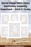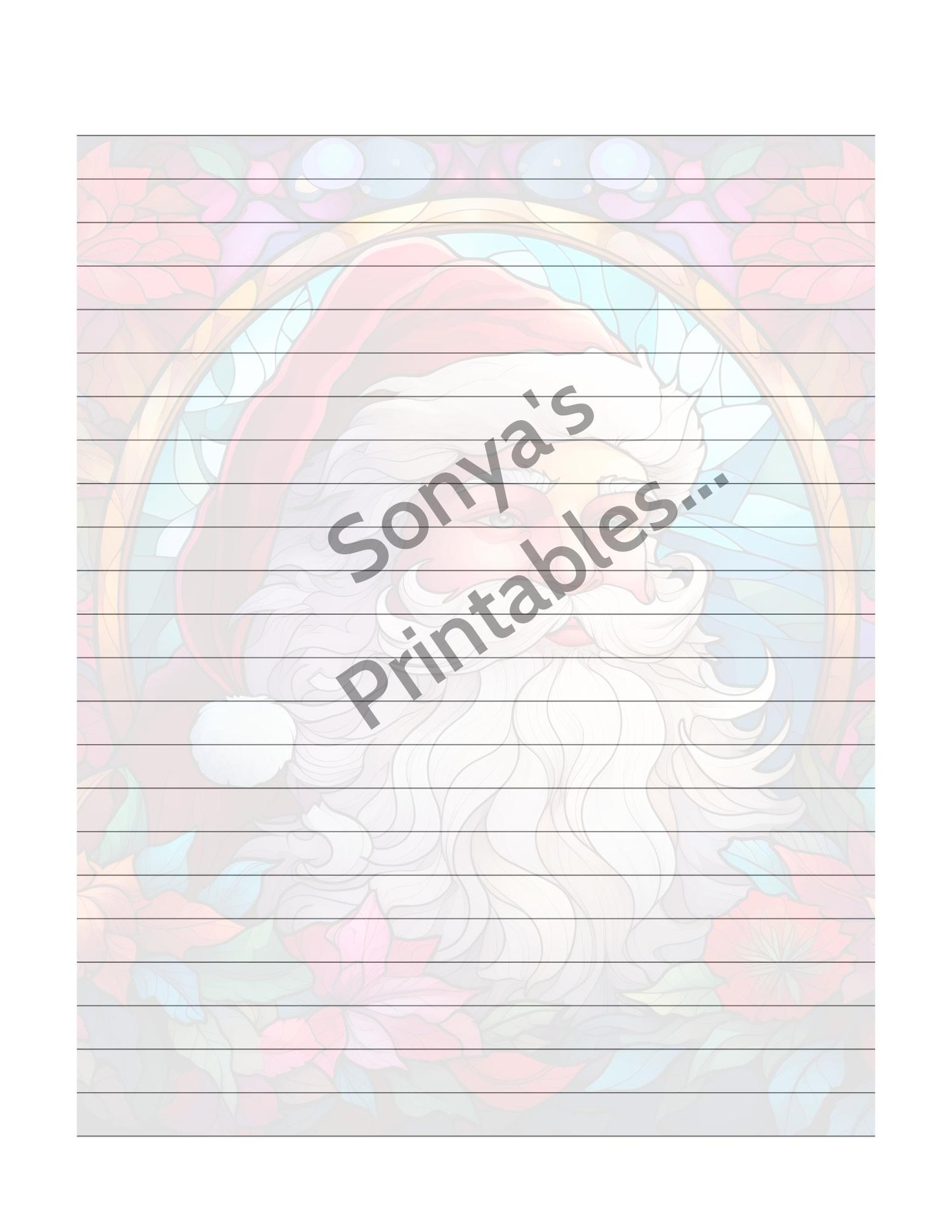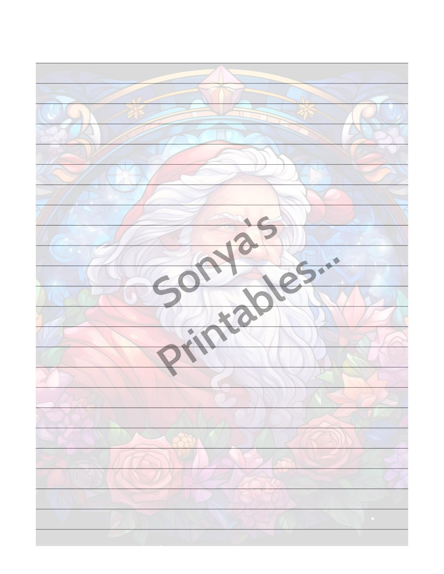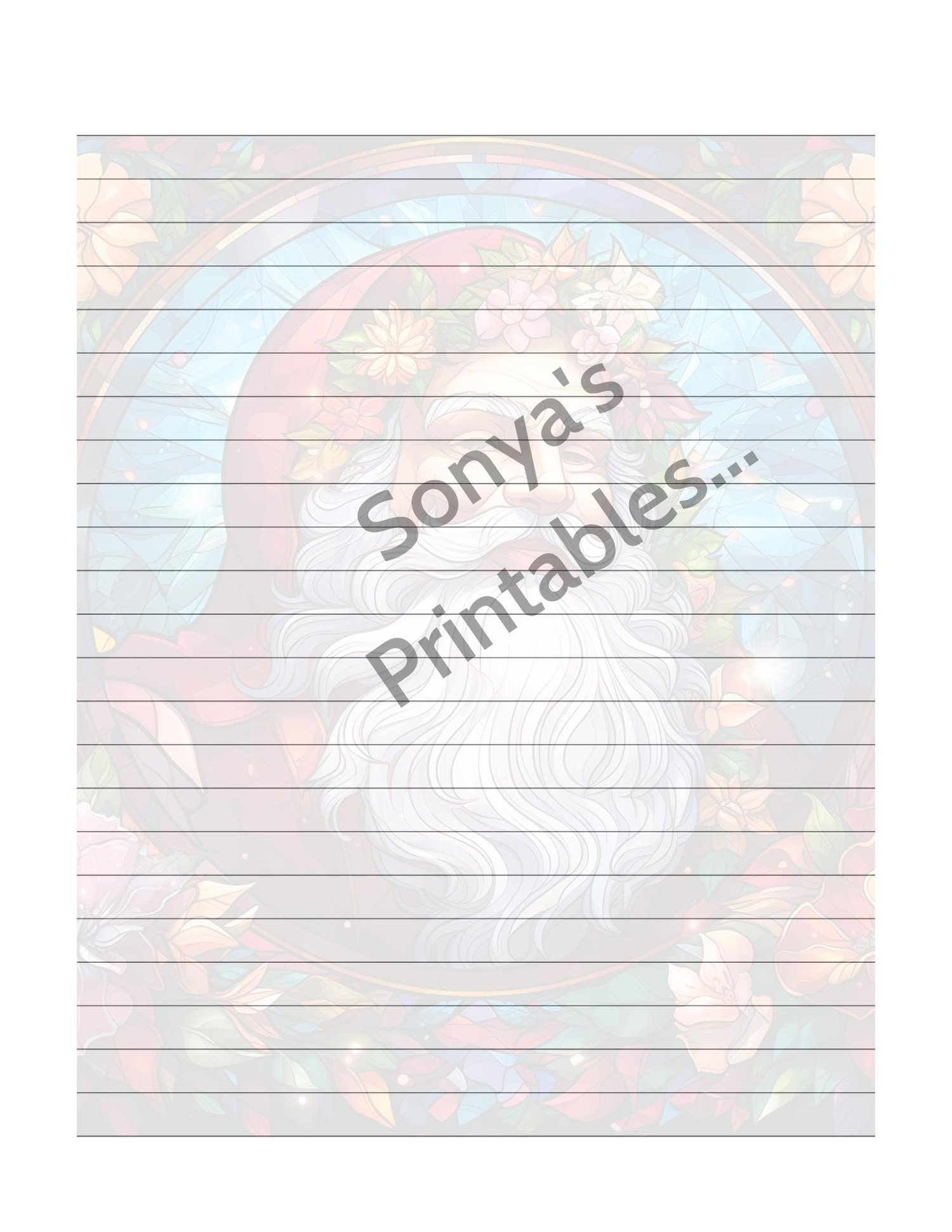 Printable Santa Stain Glass Stationery | Unique Santa Stain Glass Writing Paper | Printable Santa Claus Note Paper | Santa Penpal Paper