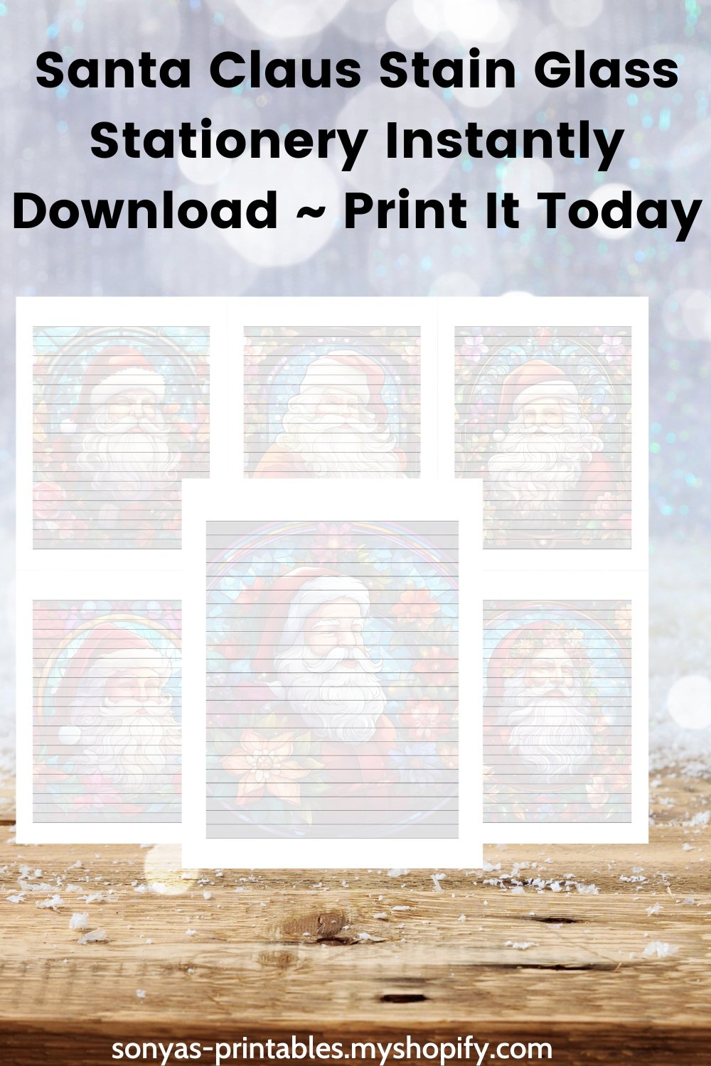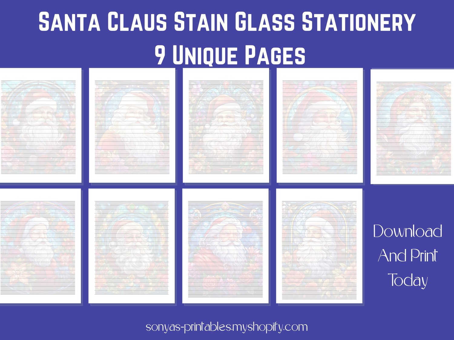 ✨Unleash your 🎄Christmas spirit🎄 with this Printable Santa 🎅Stain Glass Stationery! Whether you're writing to your pen pal 📝, jotting down a 📝note, or just daydreaming, this unique Santa Stain Glass Writing Paper 📃 is sure to bring a ☃️touch of winter magic☃️! Order now! You'll recieve 9 unique sheets of Santa Claus writing paper.