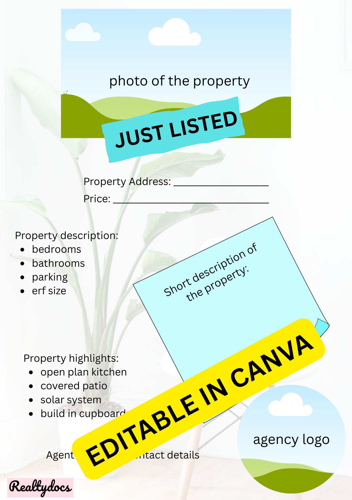 β’ 1 x Editable Property Feature Sheet Template (Canva link)