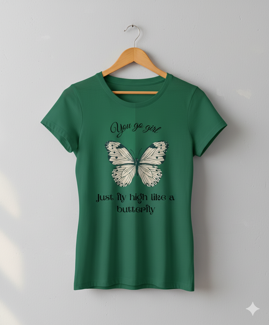 Empower your style with this elegant “You Go Girl” Butterfly T-Shirt Design 🌸🦋 Perfect for women who believe in flying high and chasing dreams, this design blends motivational words with a graceful butterfly illustration.