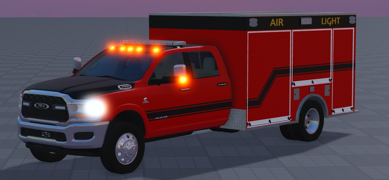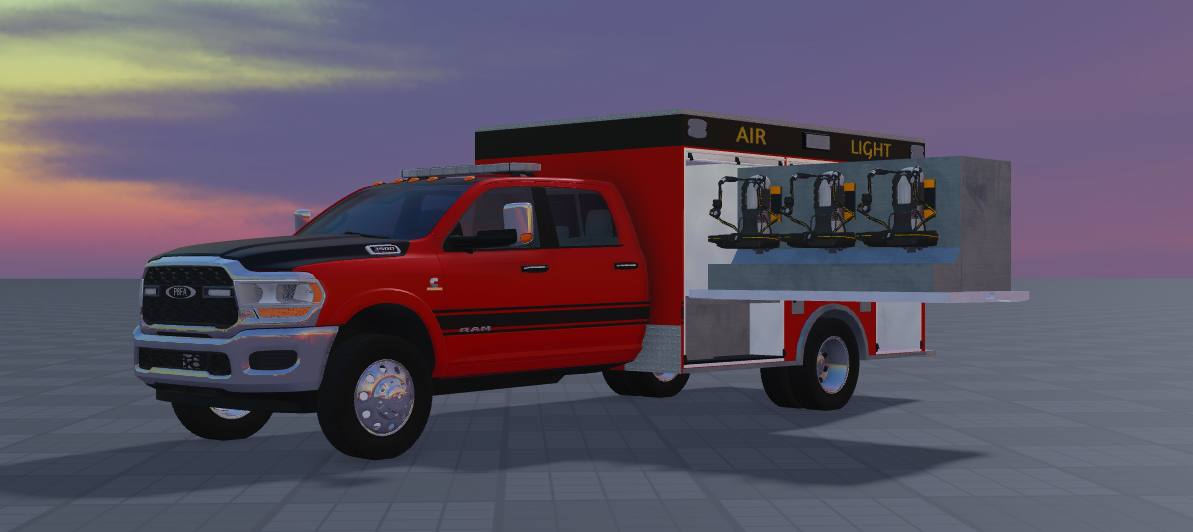 This truck is a Frontline Rapid Response Stock 2020 Pierce/Dodge Airlight/Light Rescue. The vehicle is completely handmade using parts aside from the cab. All the features work on the vehicle including the doors and compartments. The truck is on AG chassis and does not have a UVMAP. Recolor of the apparatus or striping will have to be done by hand.