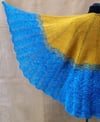 Sizing: Pattern gives instructions for a 5/8th circle shawl with a diameter of small- 110 cm / 43”; medium- 130cm / 51”; large- 150 cm / 59”.