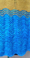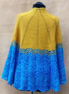 Sample shows large sized shawl knit in two colours.