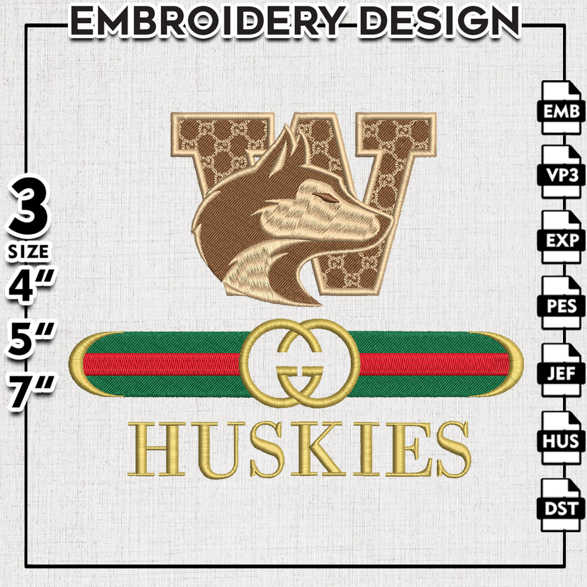 Gu.cci NCAA Washington Huskie Embroidery Designs, Washington College Football Team Embroidery Files, Game Day NCAA Football Machine Embroidery, 3 sizes, Machine Embroidery Digital Download
