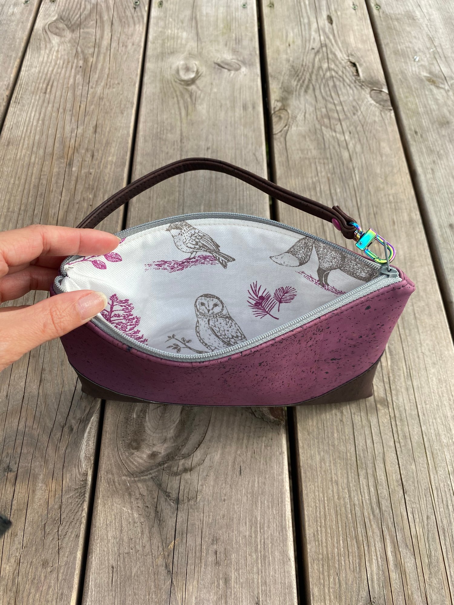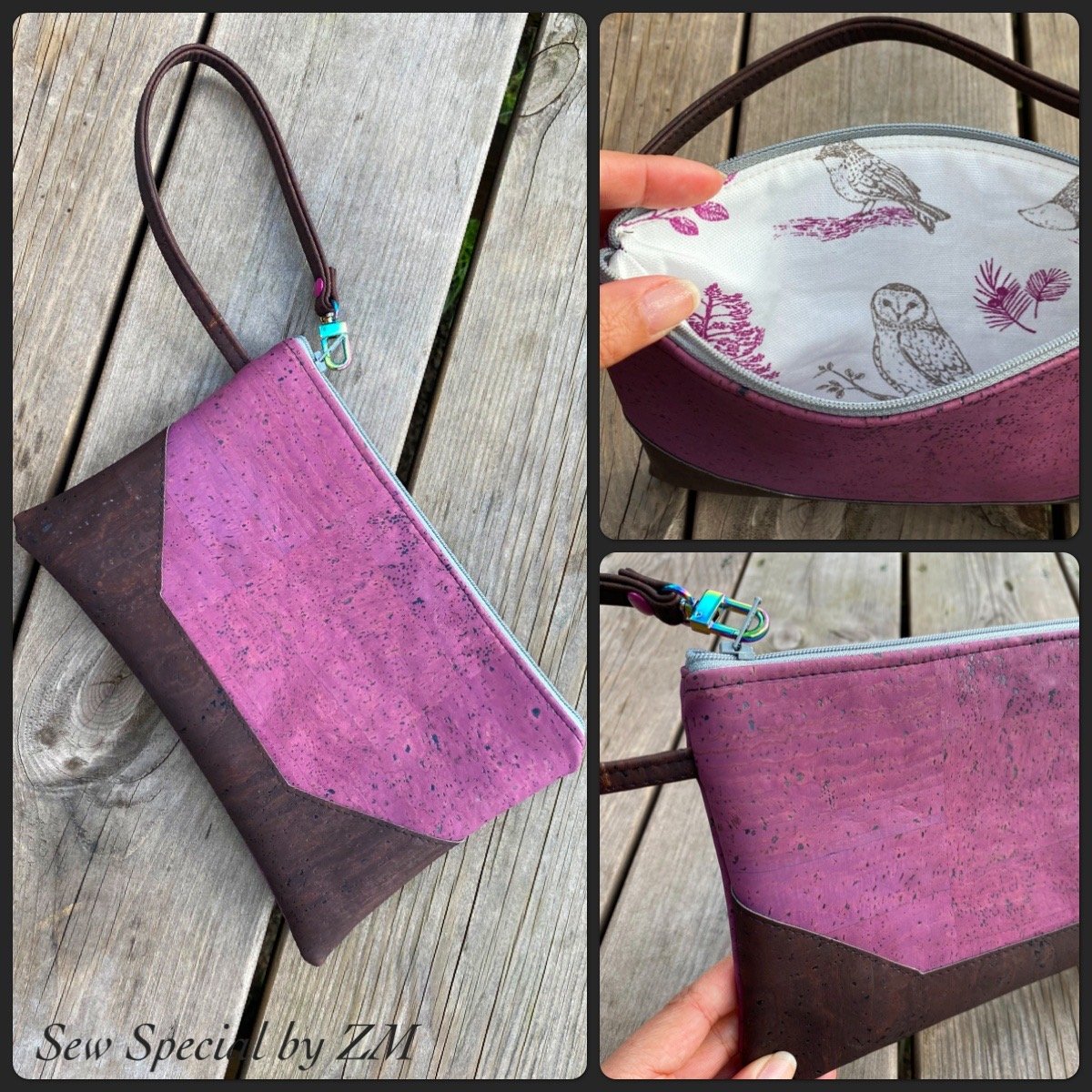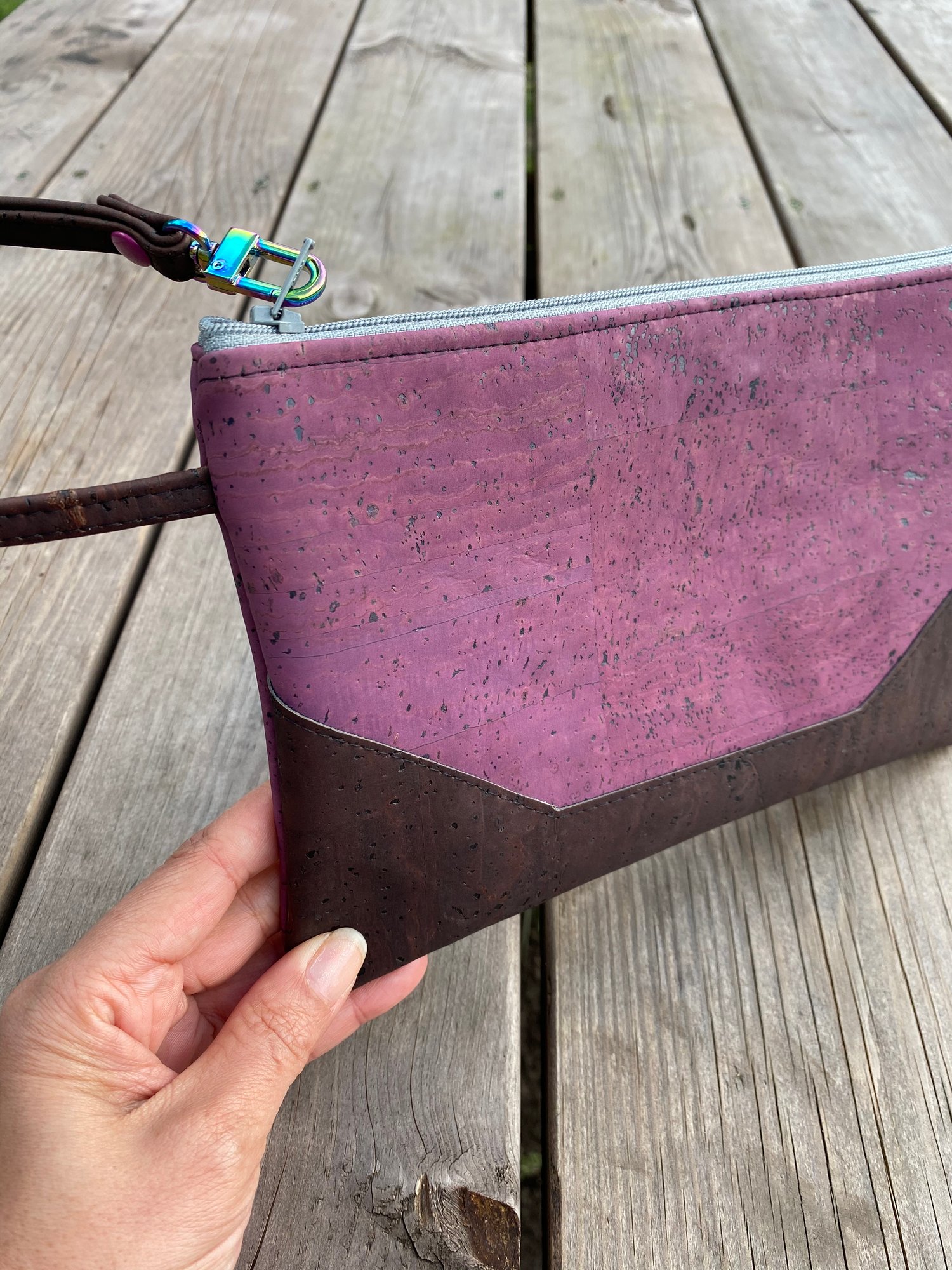 This stunning handcrafted wristlet is perfect for any occasion! Made from a blend of eco-friendly cork fabric in rich shades of deep pink and brown, this wristlet is both stylish and practical.