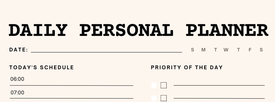 A PDF printable download that allows you to orgnaise your day across a variety of themes, from personal to health, from financial to work