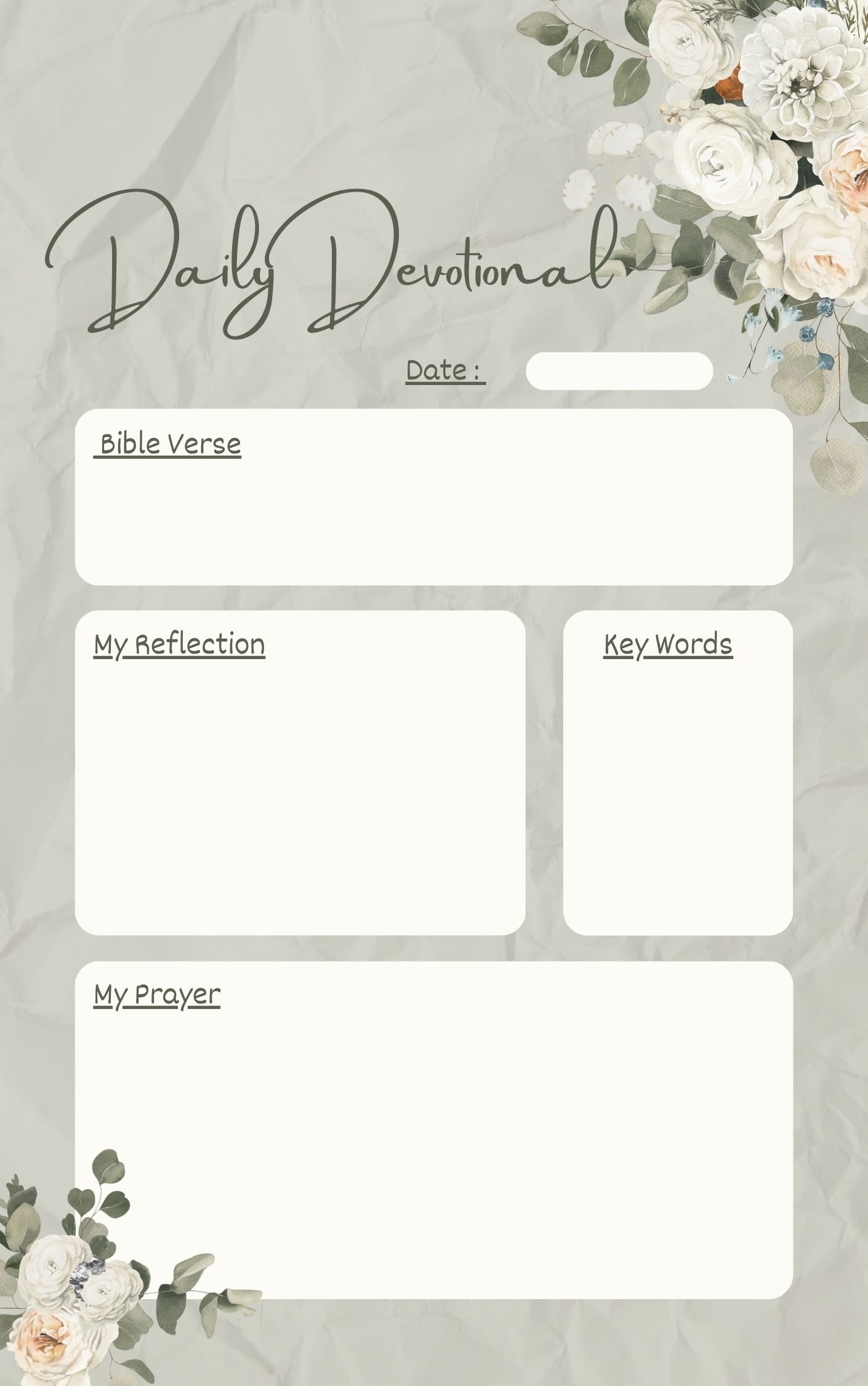 • Areas for key words, insights, and personal prayers