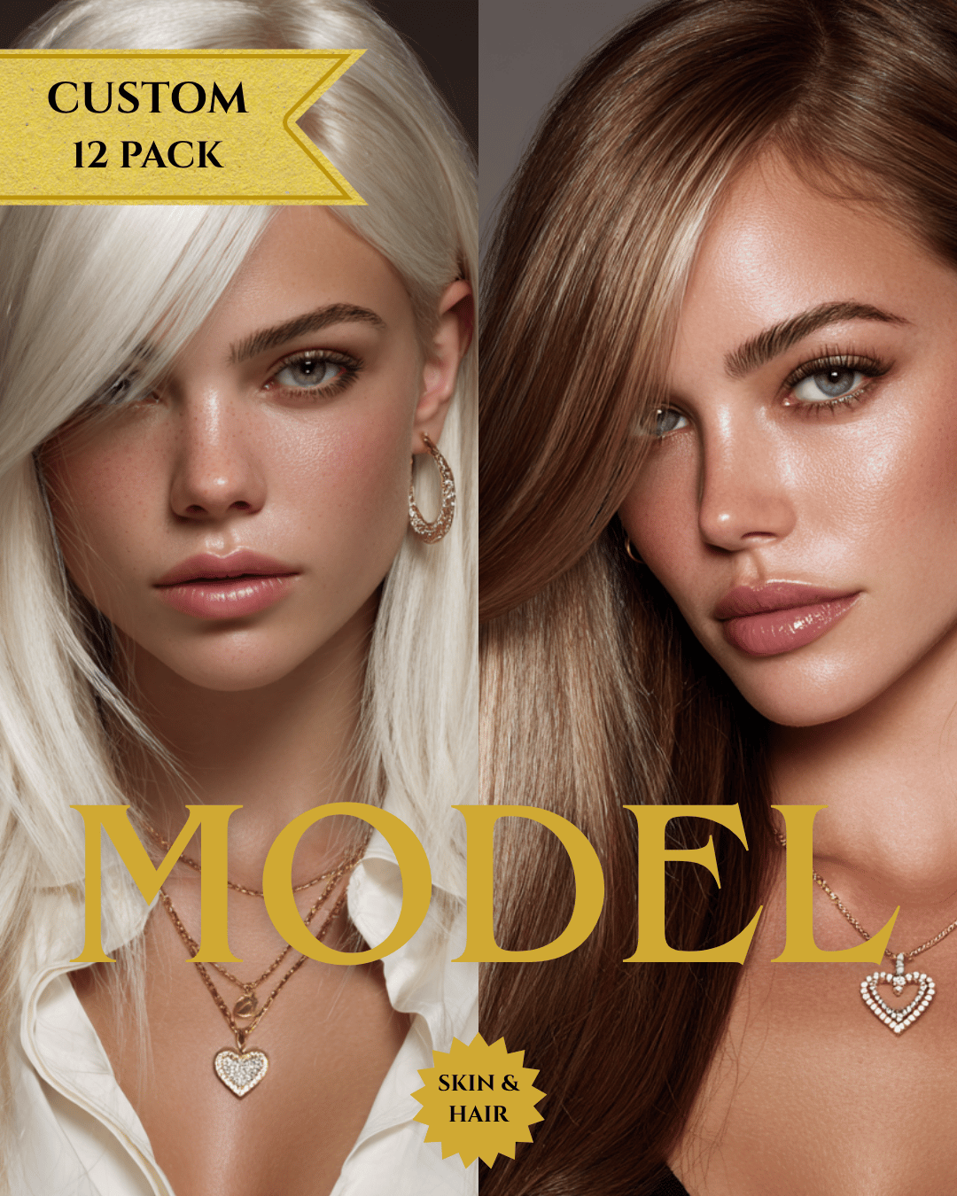 • 12 Curated, hyperrealistic images featuring stylish AI models