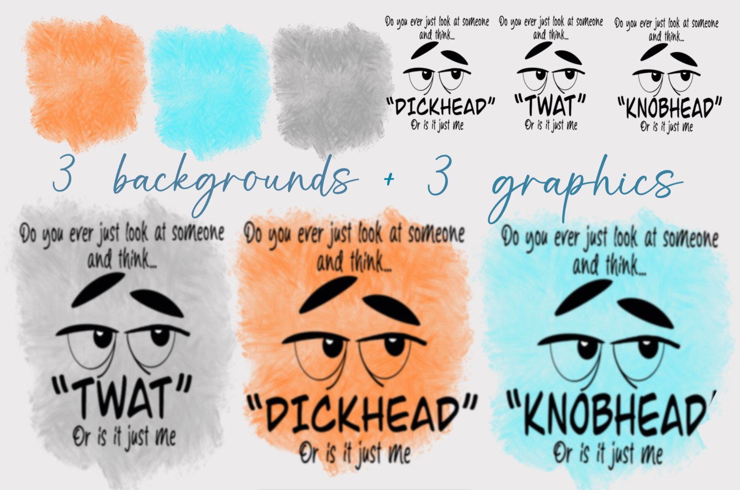 3 adult humour quotes with separate backgrounds. 6 files in total.