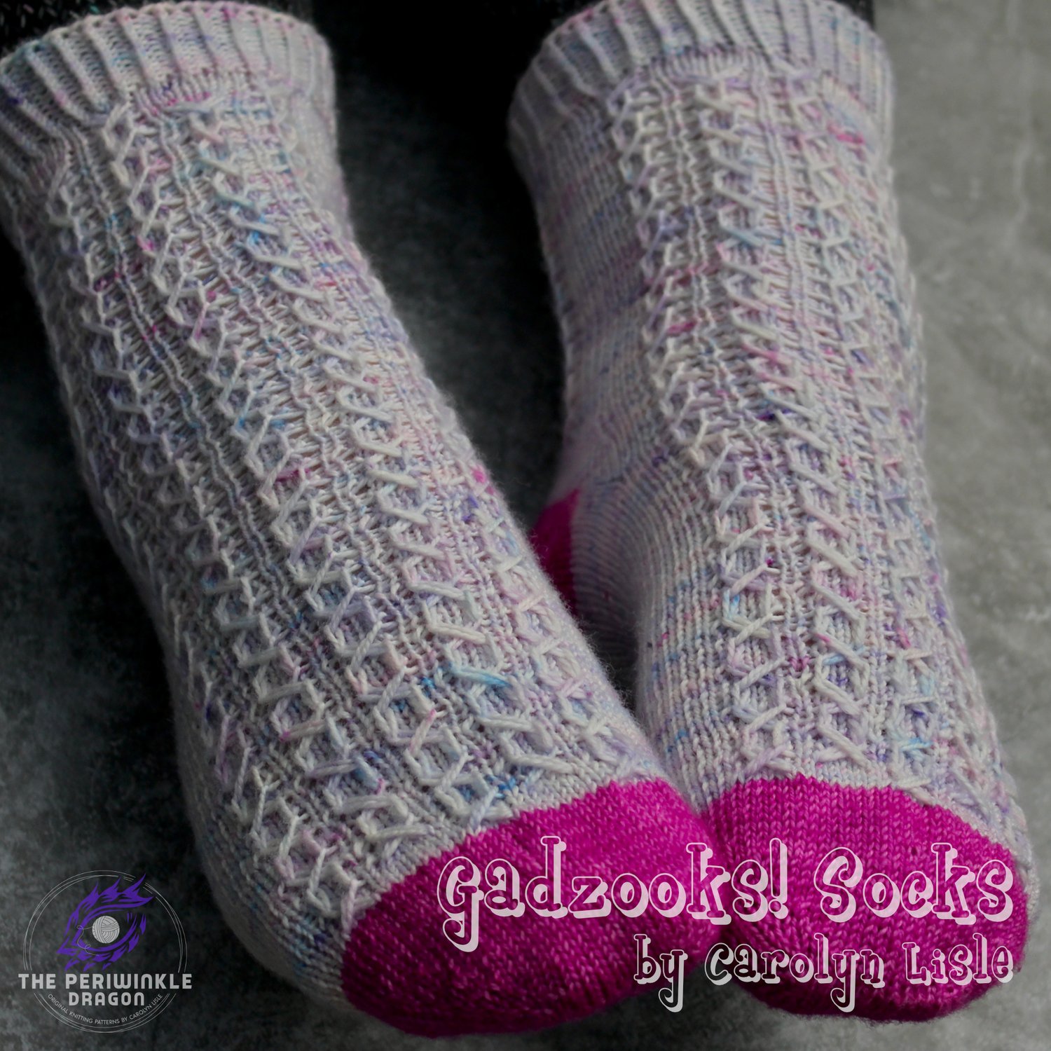 The Gadzooks! Socks are inspired by experimentation and surprises. I don’t 100% know why I did this to this yarn, but it turned out so much more beautifully than I expected that I couldn’t help but name the pattern in honour of a quirky, old-fashioned interjection. When the fabric of these socks starts to develop, you’ll feel like adding an exclamation of your own, too!
