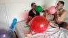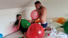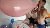 I'm not sure how Lucas, grreen hair and green ballon pop his one but Théo , pink hair and pink balloon blow to pop his one.