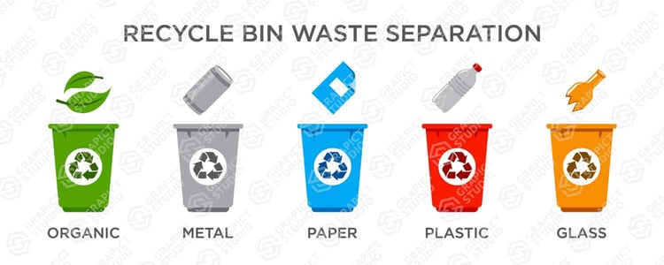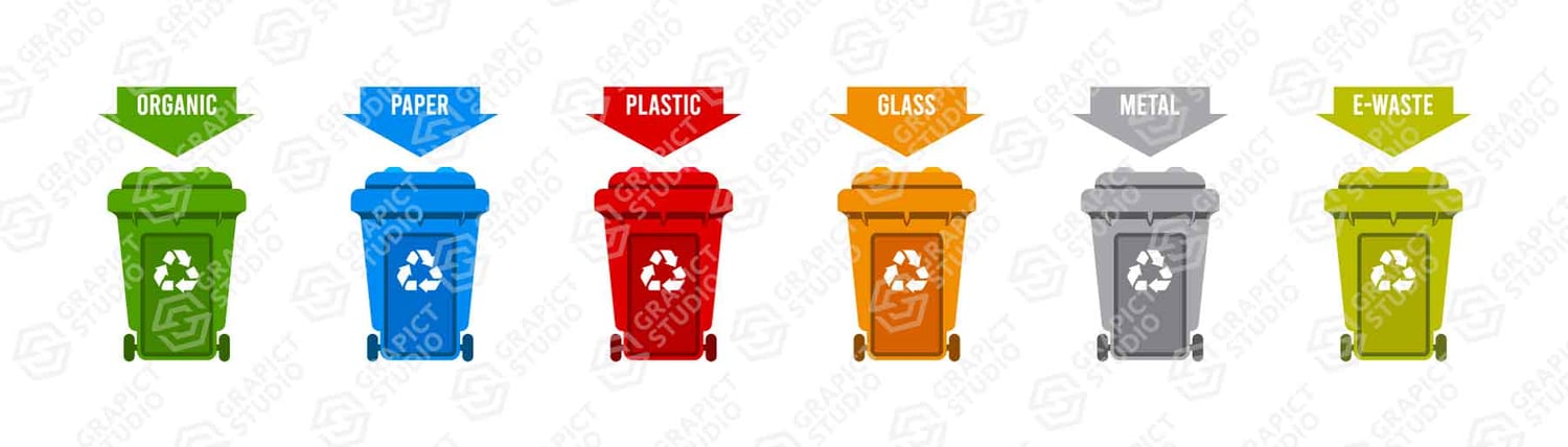 Recycle bin separation categories set, design element suitable for websites, print design or app