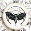 This enchanting moth and crescent moon embroidery pattern offers two ways to bring your design to life! Made for a 6" hoop, it's perfect for both: