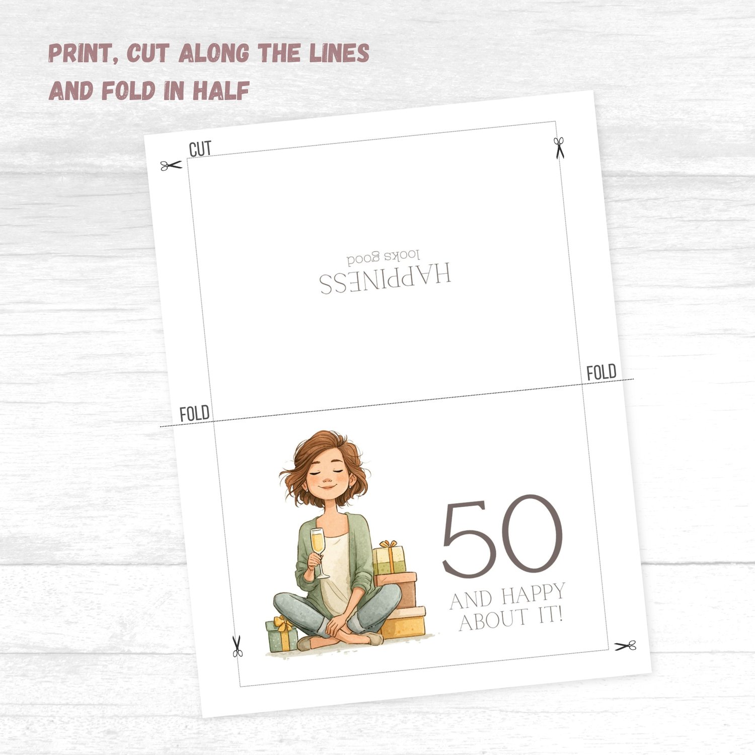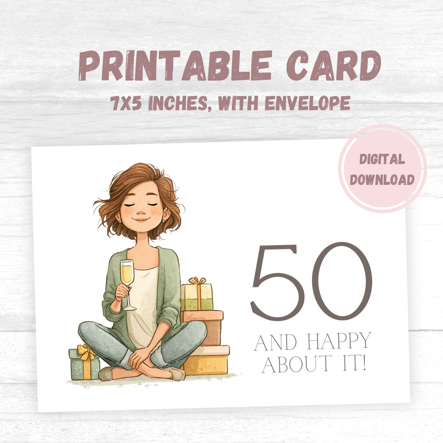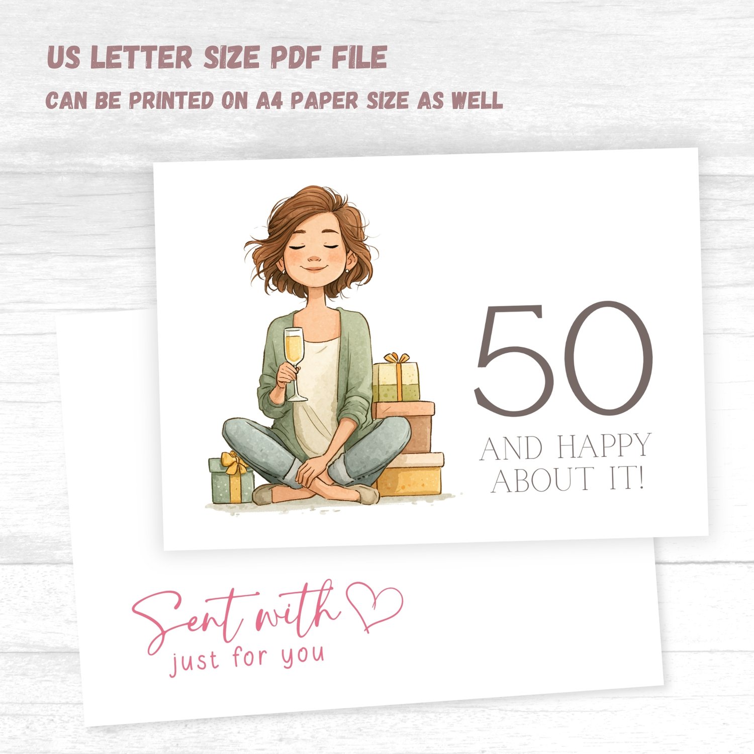 Looking for some 50th birthday card for a dear woman in your life? I got it! Whether it's for your mom, or a girl friend, this easy-to-use printable milestone card for fifty birthday is sure the right one for you. Get this card now and say "Happy Turning 50" with cheers to her shine!