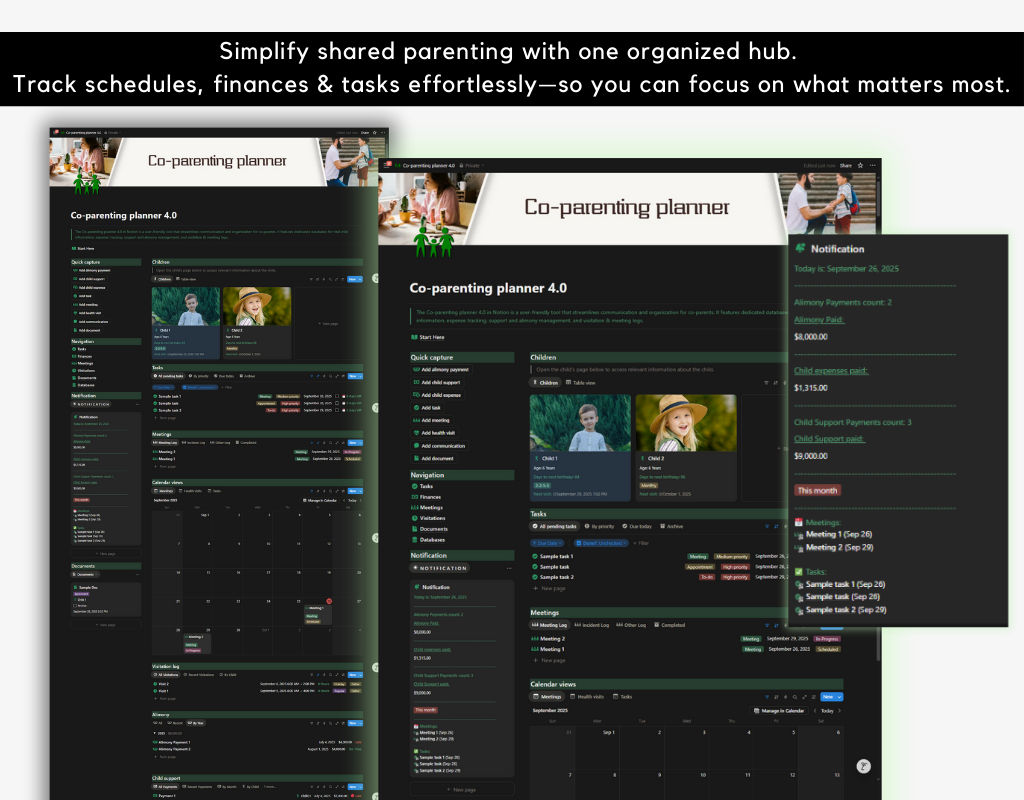 The Co-Parenting Planner is your all-in-one Notion template for managing shared parenting responsibilities with ease. Keep child information, schedules, finances, and important documents in one organized space—reducing conflict and saving time.