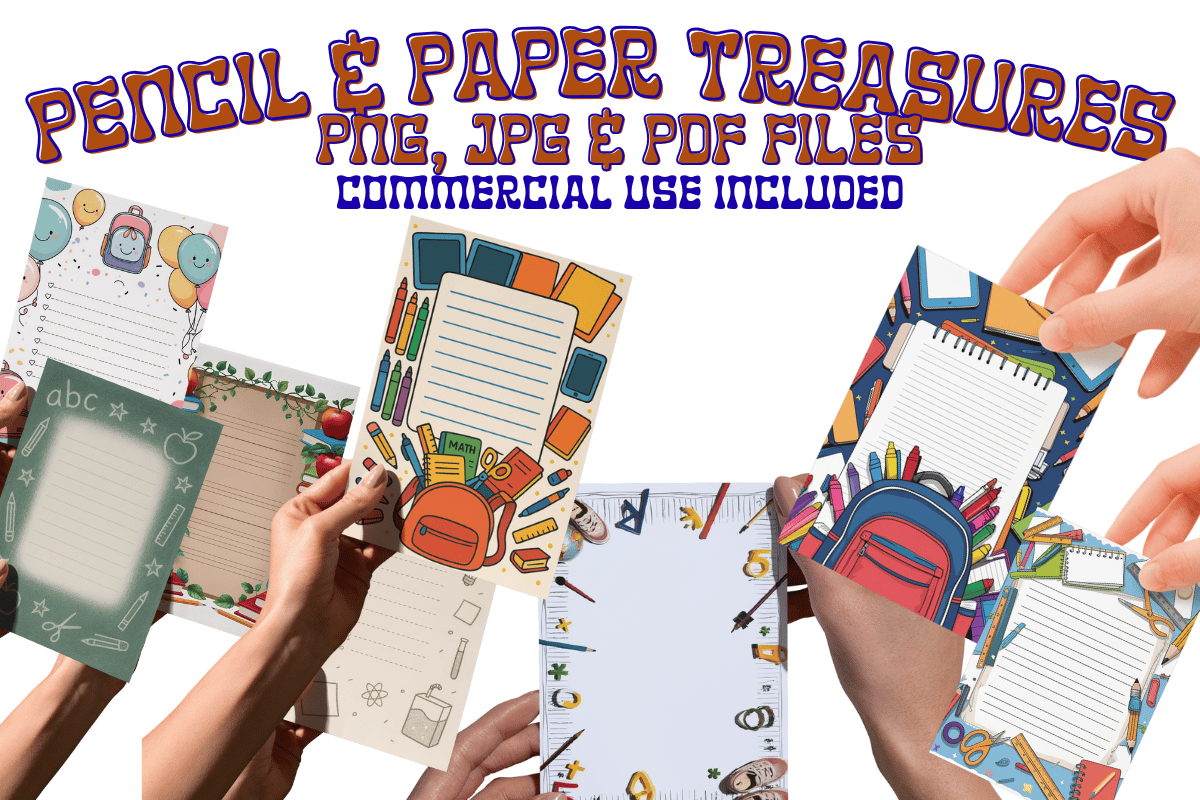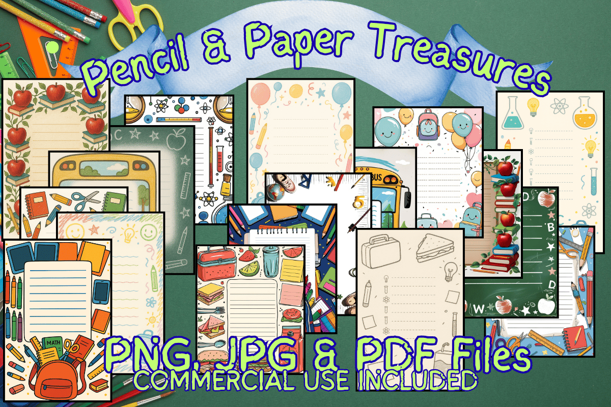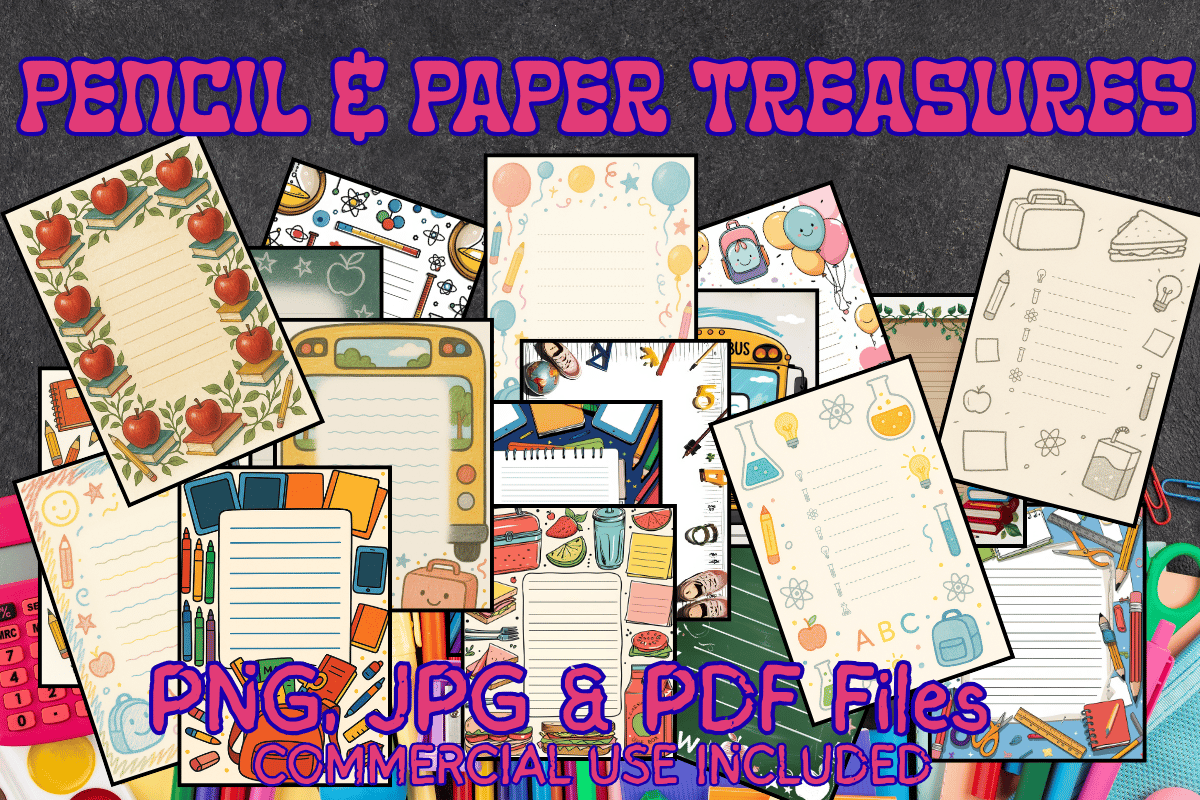 Unlock creativity with Pencil & Paper Treasures' 18-page printable journal bundle! Featuring school-themed borders, lined writing spaces, and teacher-approved designs. Instant download includes high-res PDF, JPG + PNGs – perfect for planners, memory-keeping, or classroom fun!