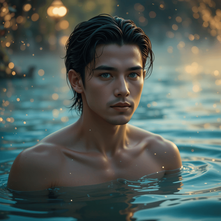 Surface Seduction – Ethereal Male Fantasy Portrait in Misty Lake (Digital Download)