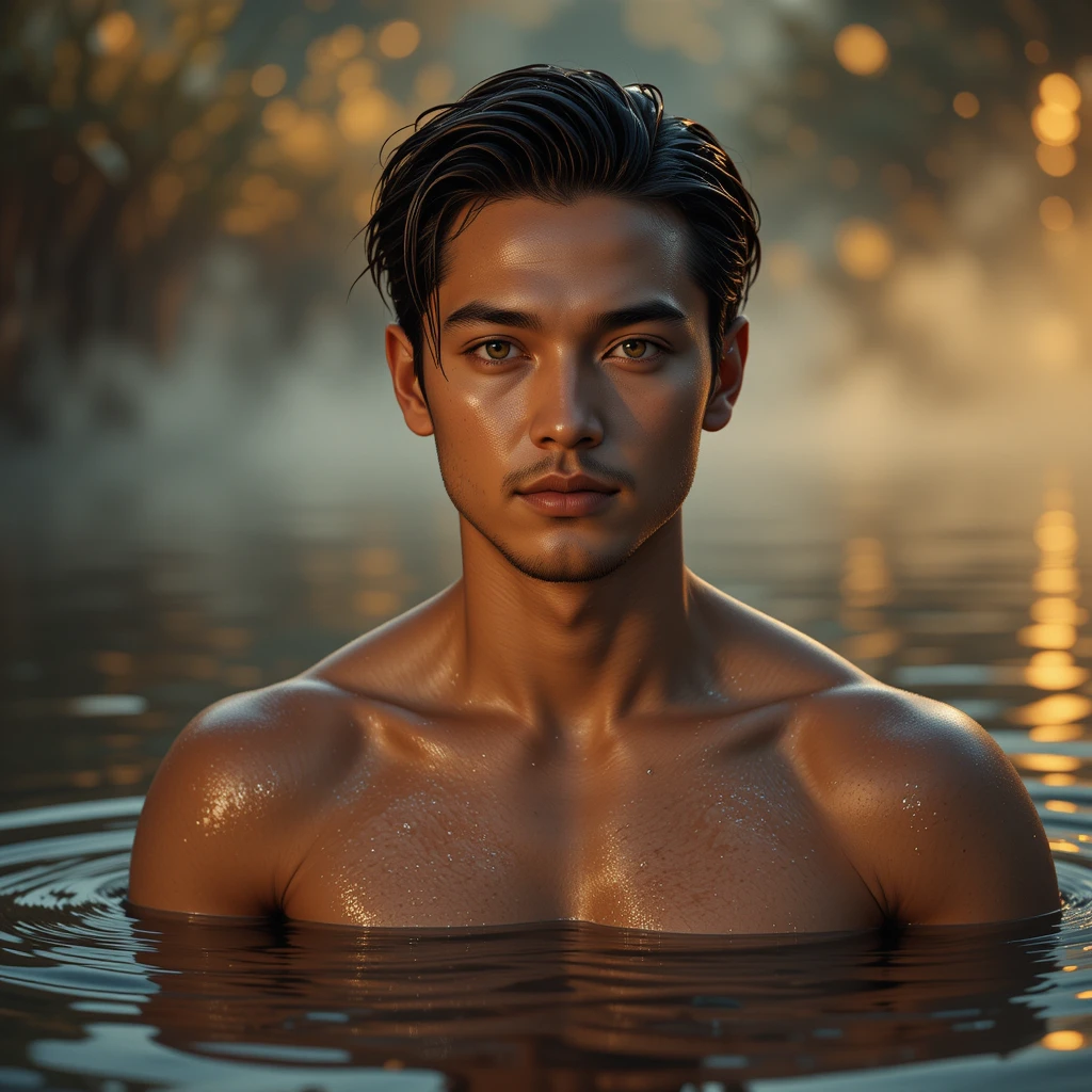 Step into the mystique of Surface Seduction, an enchanting AI-generated artwork capturing a graceful male figure emerging from a fog-kissed lake. Surrounded by a veil of mist and bathed in soft, ethereal light, his presence is both serene and irresistibly magnetic. This portrait weaves together fantasy and allure in a dreamlike waterscape, creating a visual that’s hauntingly beautiful and subtly seductive.