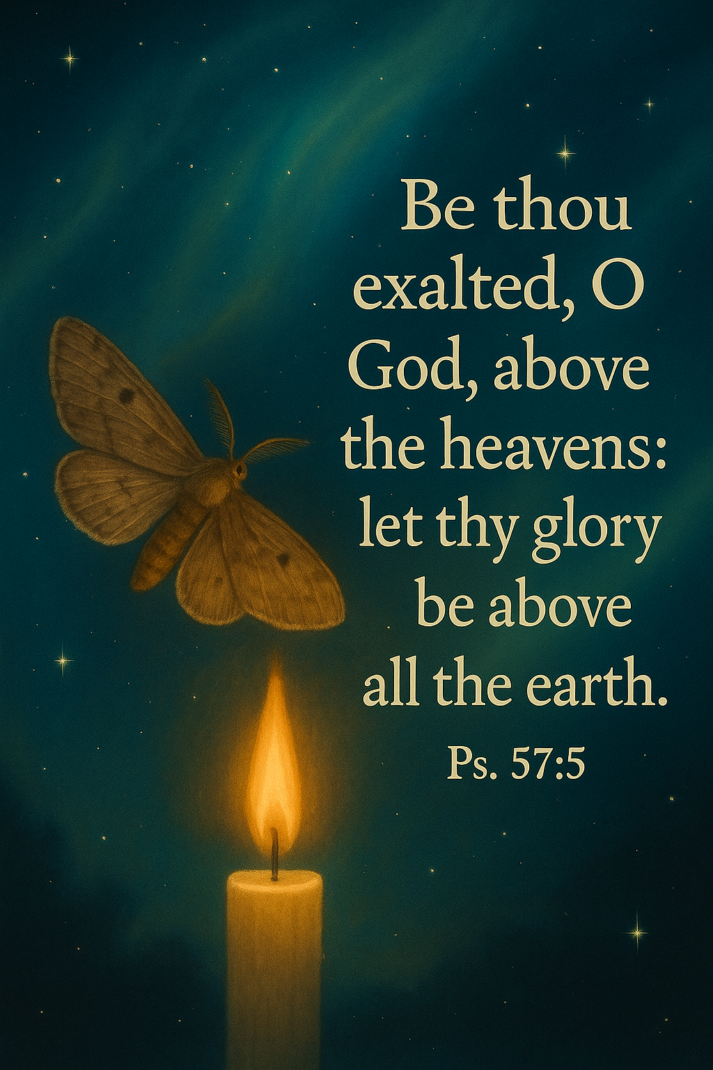 🕯️✨ Christian Scripture Wall Art – Psalm 57:5 Candle & Moth Poster – Faith-Based Printable for Homeschool, Ministry & Devotion – Divine Glory Theme