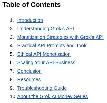 Why Bet on Grok? Ditch ordinary like ChatGPT—Grok’s API shines with live X insights and a clever, engaging tone that captivates clients and sets your offerings apart. Prioritize ethics: Always disclose AI use to foster trust and deliver genuine value with grounded earnings potential. As the capstone of the Grok AI Money Series, snag the full bundle for all 12 e-books and conquer the AI gold rush!