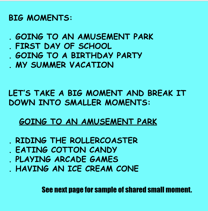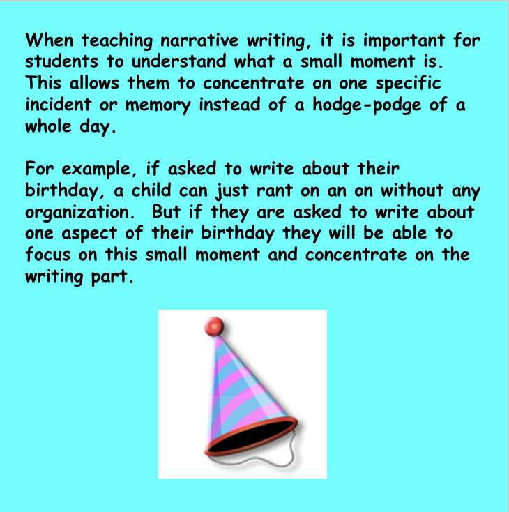 Teaching about small moments can greatly improve students’ writing. Small moment stories are when authors write about important events from their lives.