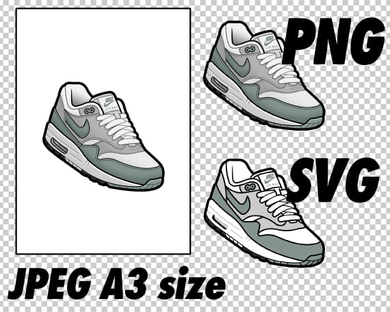 Air Max 1 Mica Green JPEG PNG SVG digital sneaker art