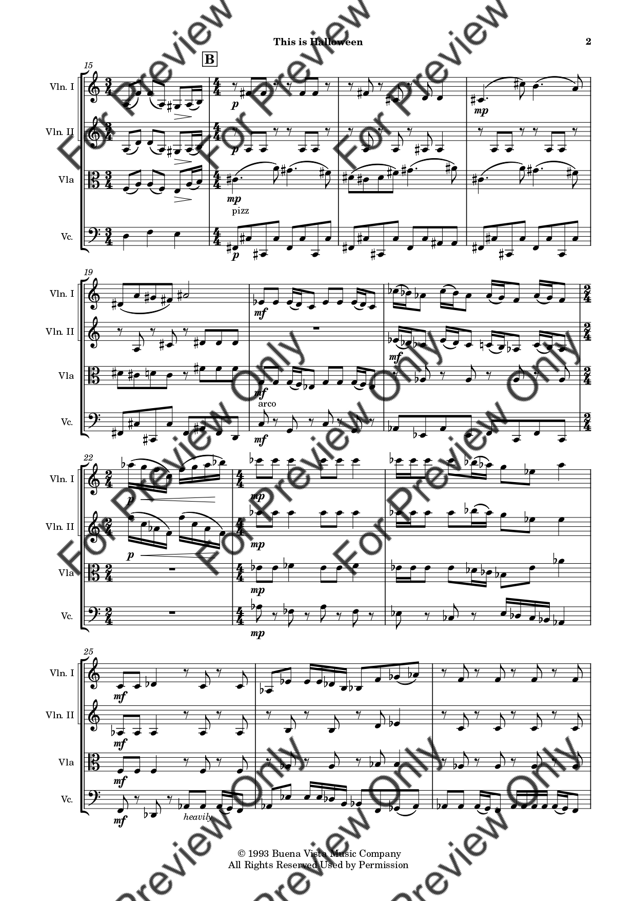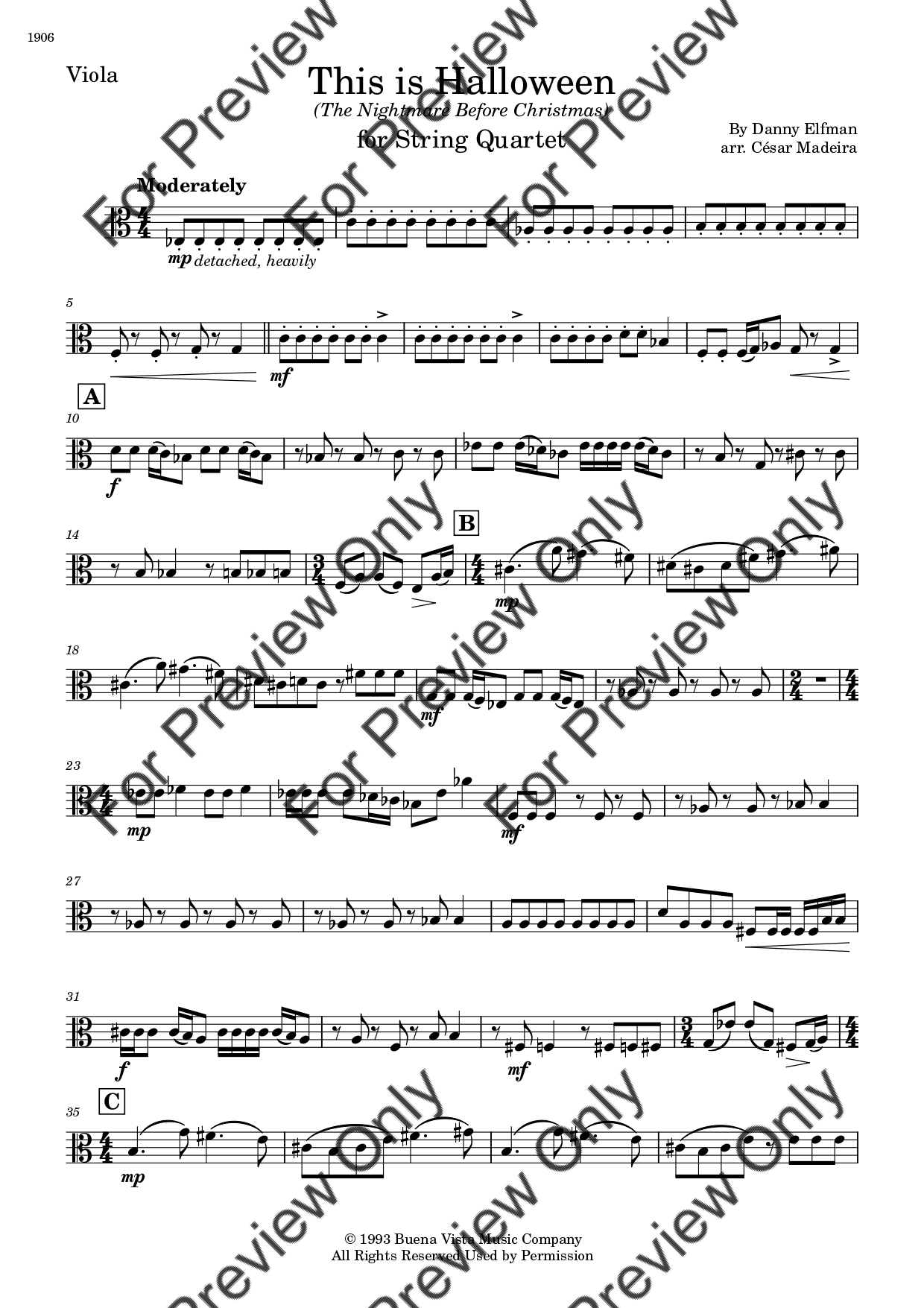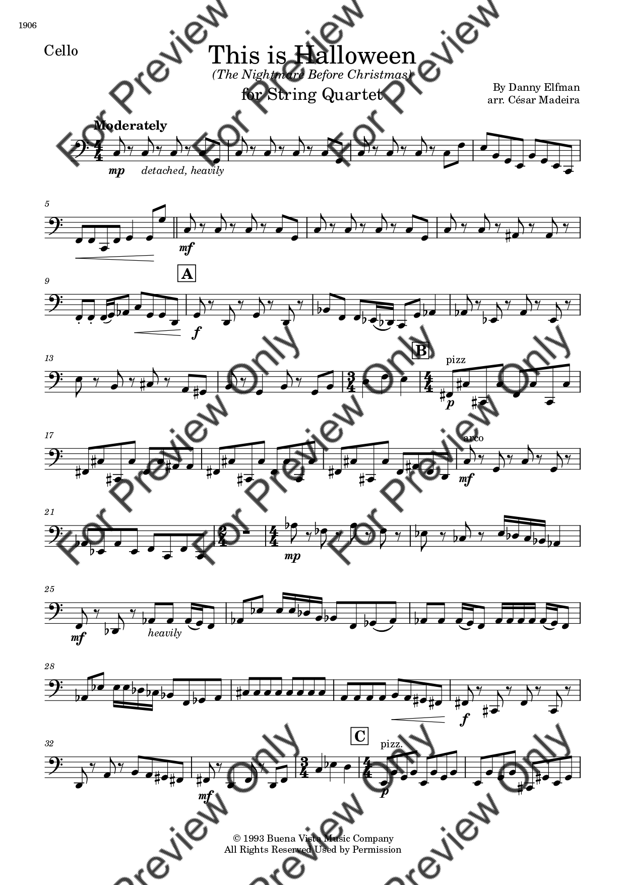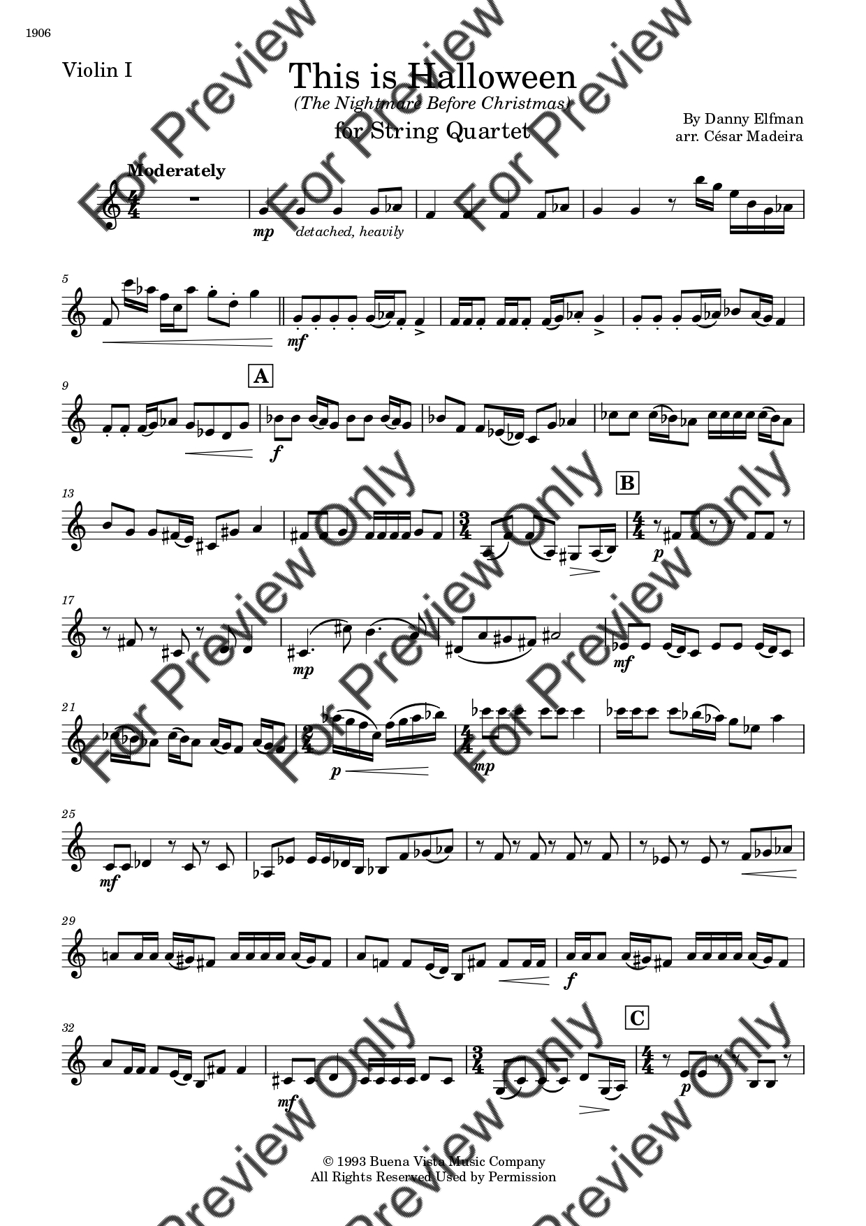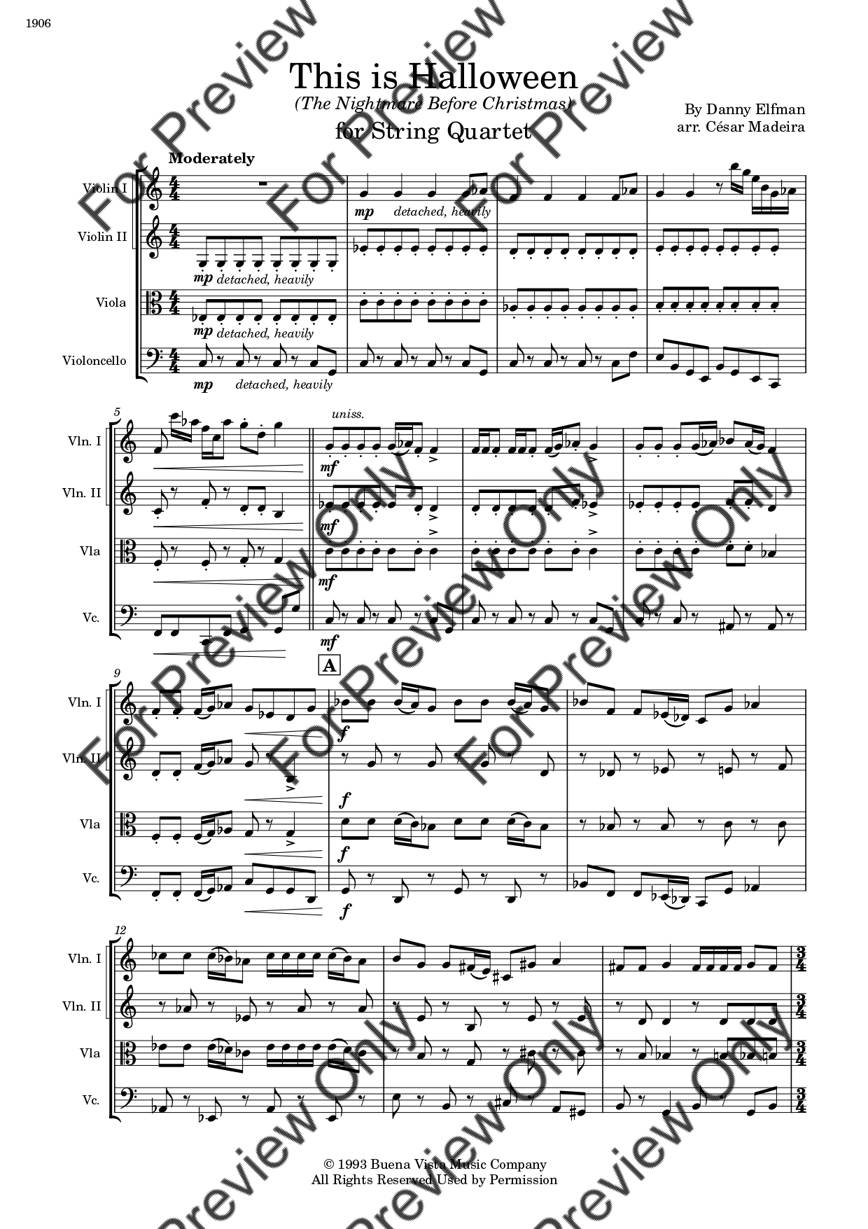 This Is Halloween from The Nightmare Before Christmas by Danny Elfman. Arrangement for String Quartet - Violin 1, 2, Viola and Violoncello. With Full Score and Individual Parts. Have fun!