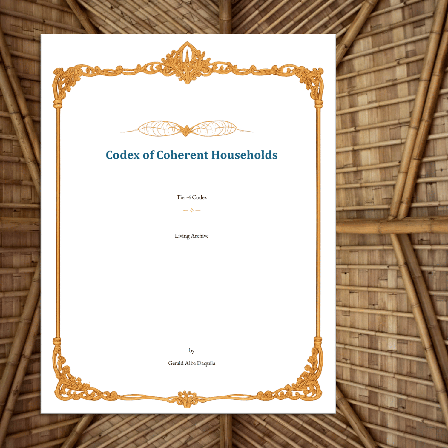 The T4 Codex outlines the concept of coherent households, emphasizing emotional and relational stability that fosters care and community. It introduces principles for household coherence, key roles, resonance bands, and practices aimed at enhancing interpersonal connection without dependency. Emphasis is placed on ethical engagement and nurturing neighborhood harmony through shared rituals and transparency.