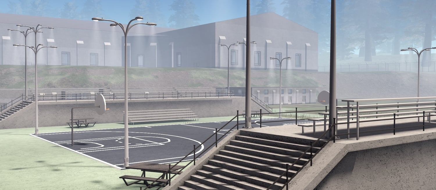 Pelican Bay State Prison is a highly detailed recreation of one of America’s most notorious maximum-security prisons. Explore the sprawling facility, from the secure cell blocks and recreation yards to administrative areas and high-security zones.