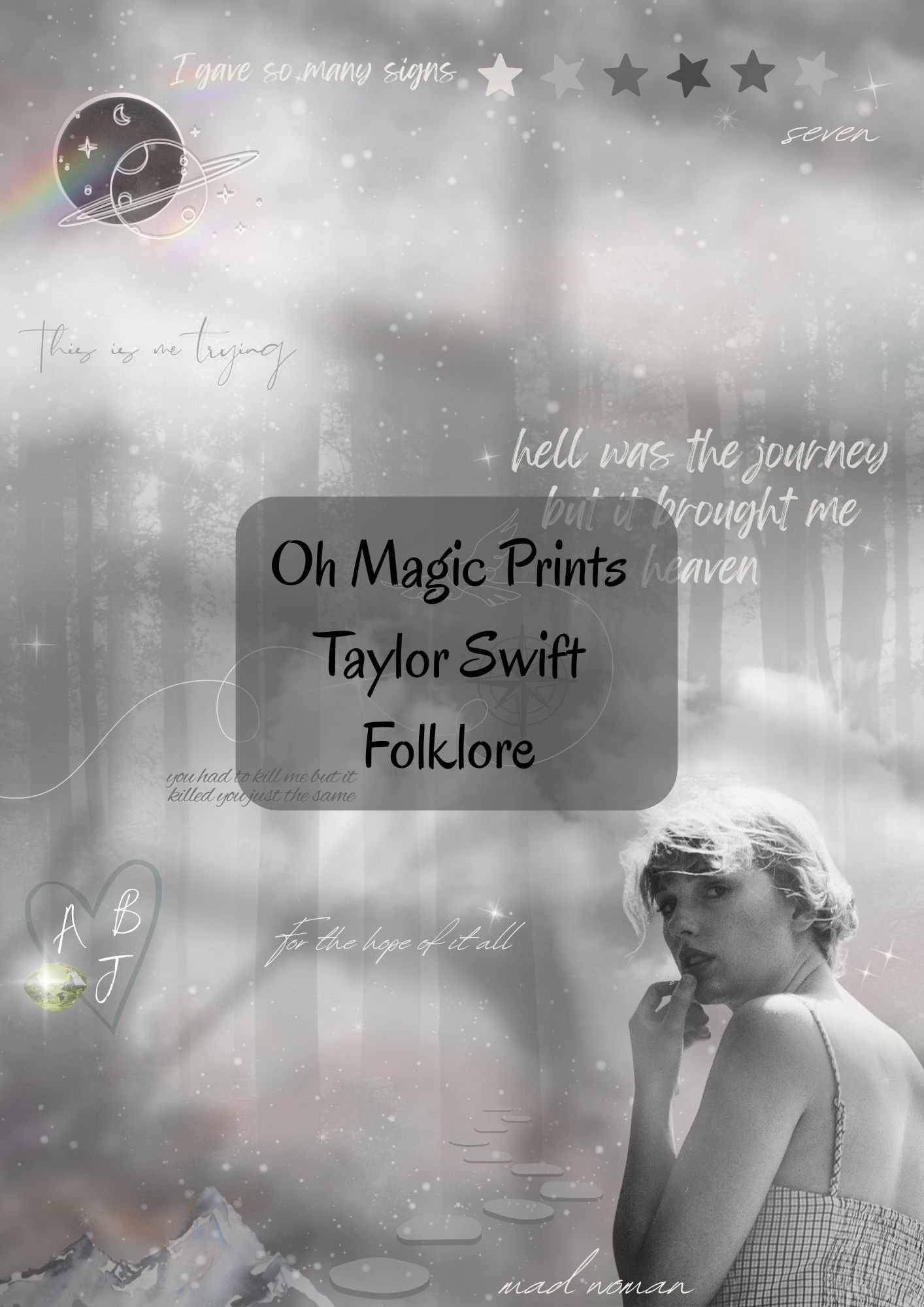Dive into a dreamy world of peace, freedom, and cosmic love with this Folklore-inspired black-and-white digital poster. Featuring subtle sparkle, eclipse motifs, and lyrical elements like “I love you to the moon and to Saturn,” this design captures the emotional depth and timeless charm of a love triangle written in the stars.