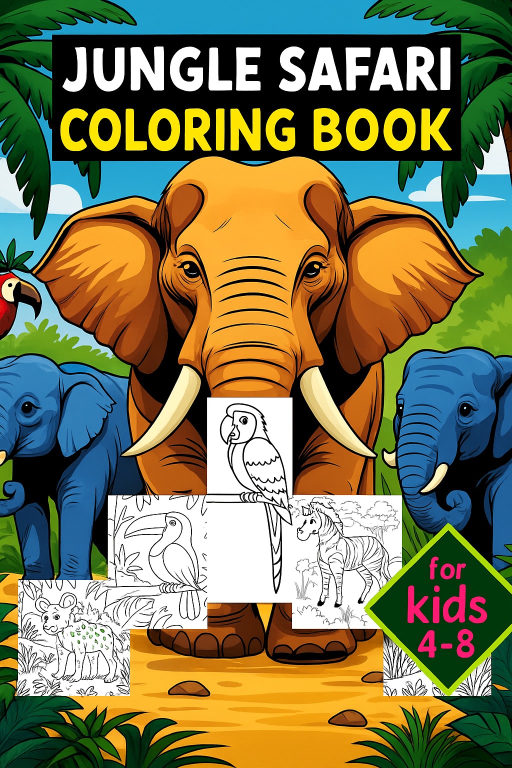 kids coloring book interior, jungle safari coloring pages, KDP coloring book template, printable coloring book for kids, animal coloring book interior, safari animals coloring book, coloring pages for children 4-8, kids activity book KDP interior, jungle animals coloring book PDF, Amazon KDP interiors for kids, ready-to-upload coloring book interior, fun coloring pages for kids, KDP low content book interiors, digital coloring book download, printable jungle coloring book