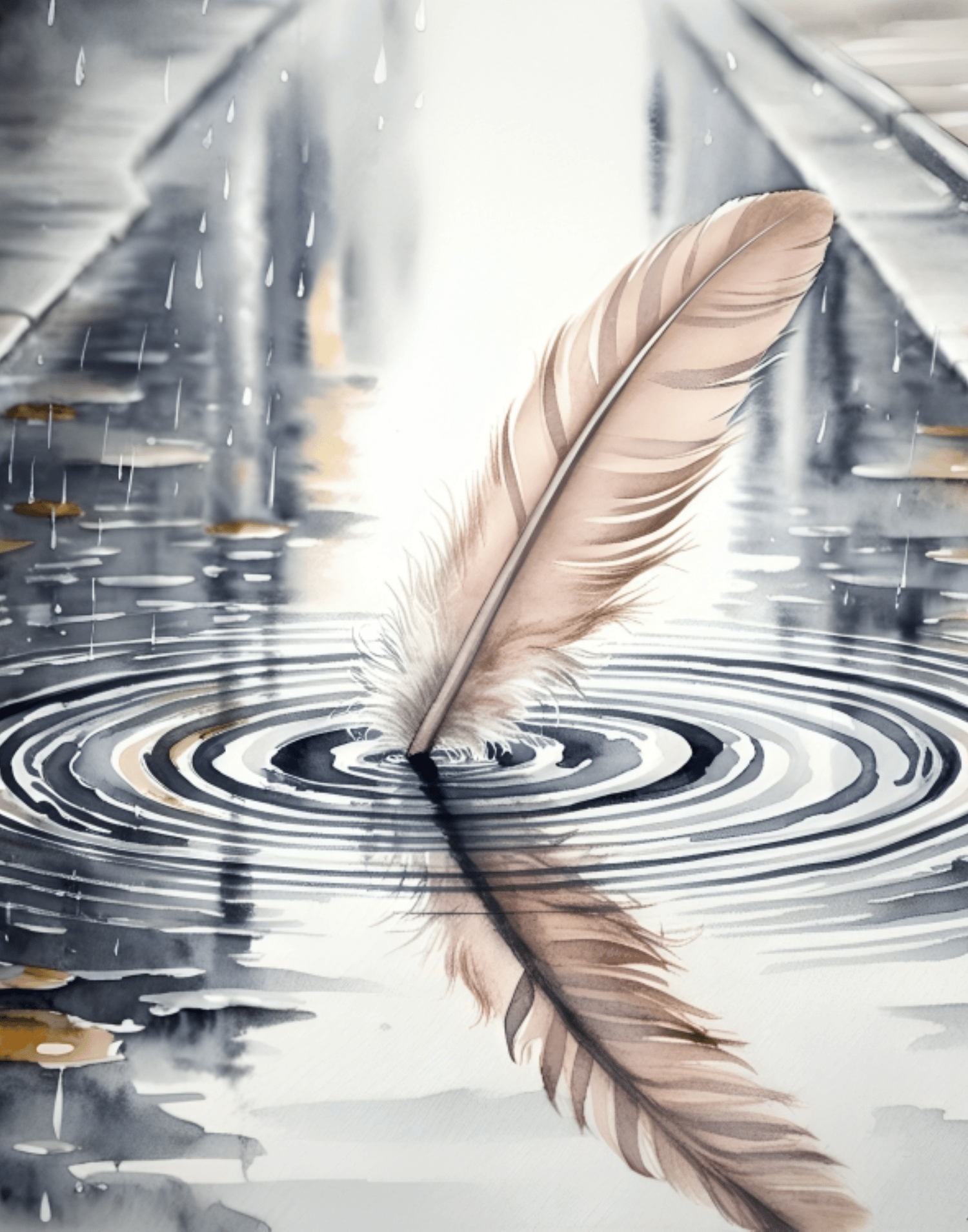 Monsoon Beauty, Cool Street Art, Single Feather on Street Water Art, Feather Art, Serene Art, Street Art, Water Wave Painting, Feather Dropping Water Painting, Small Effort painting.