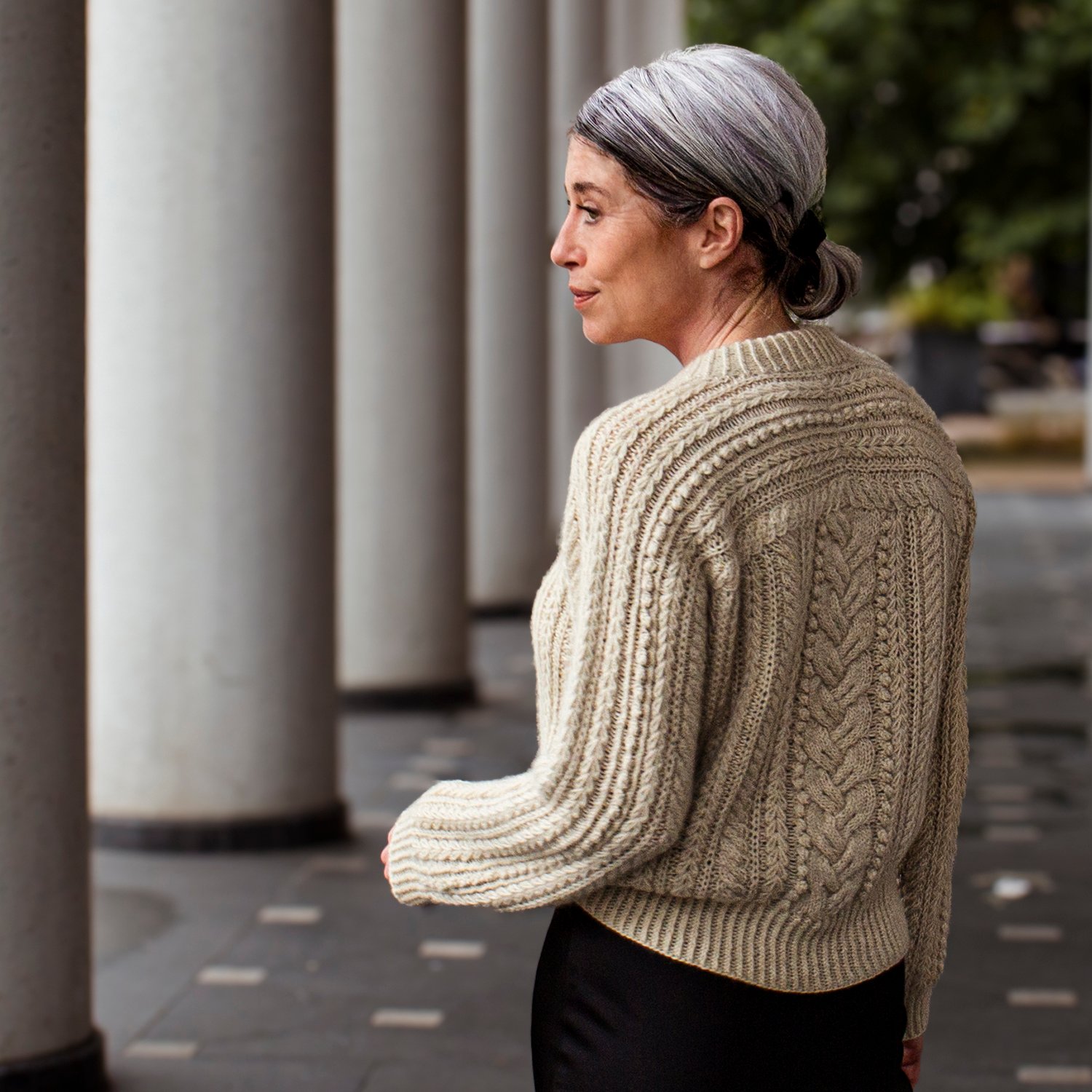 Though the cablework looks intricate, the rhythm soon becomes soothing and intuitive, making Neive a joy to knit. A puff stitch detail adds extra texture, supported by a step-by-step video tutorial to guide you through. Elegant yet relaxed, Neive is designed to become the sweater you’ll reach for again and again.