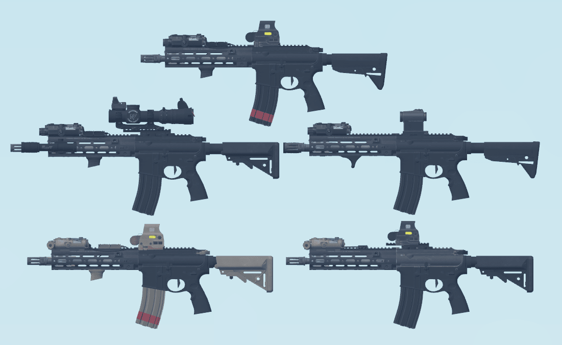 The Daniel Defense MK18 is a gas operated assult rifle that's chanmbered in 5.56mm NATO. This pack includes 5 different variants of the MK18 from the sights to grips, etc.