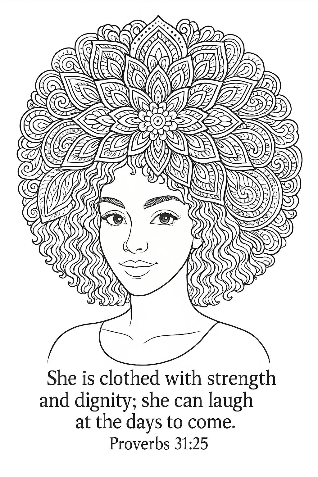 Strength & Dignity – Proverbs 31:25 Coloring Page for Girls & Women