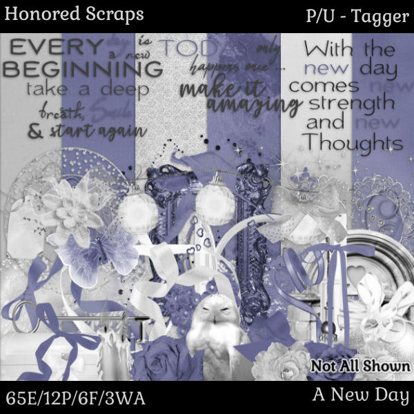 A New Day is a tagger kit that consists of 65 elements, 12 papers, 6 frames and 3 word art.